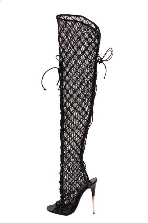 Kourtney Kardashian popped up in a black mini dress and Tom Ford fishnet over the knee boots.