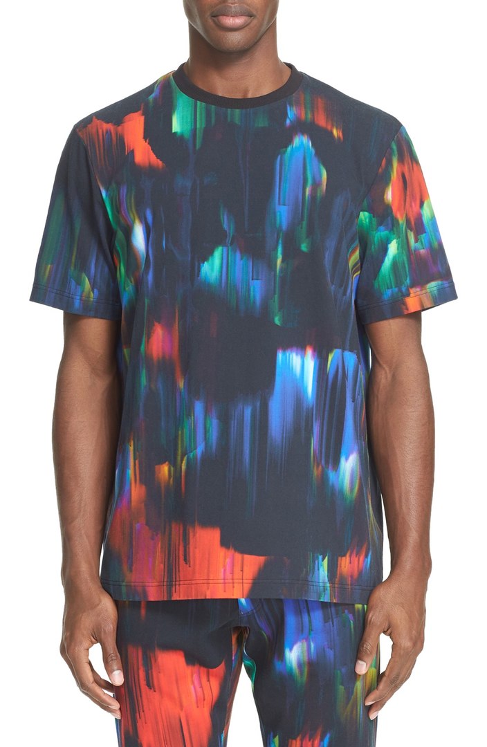 Streaks of bright, psychedelic color cover every inch of this bold crewneck T-shirt crafted from superfine stretch-cotton jersey.