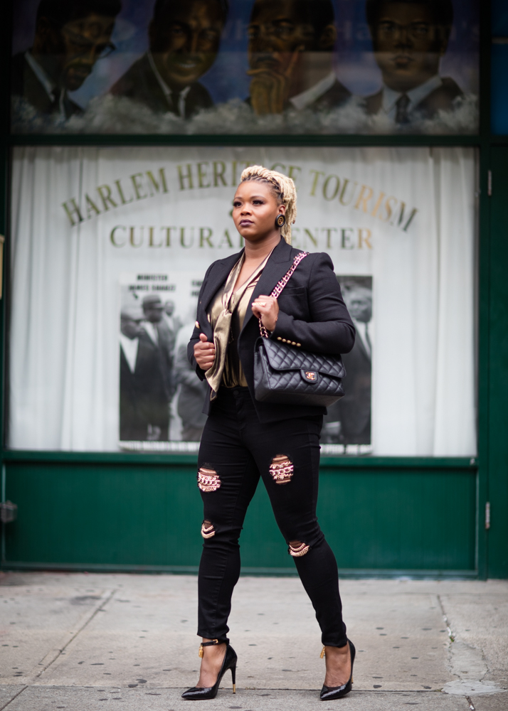 To speak on the round, I went for my interpretation of Parisian chic in a Balmain blazer I scored at Net-a-Porter, a Haute Hippie Gold top, and Rayar Jeans chain distressed jeans.
