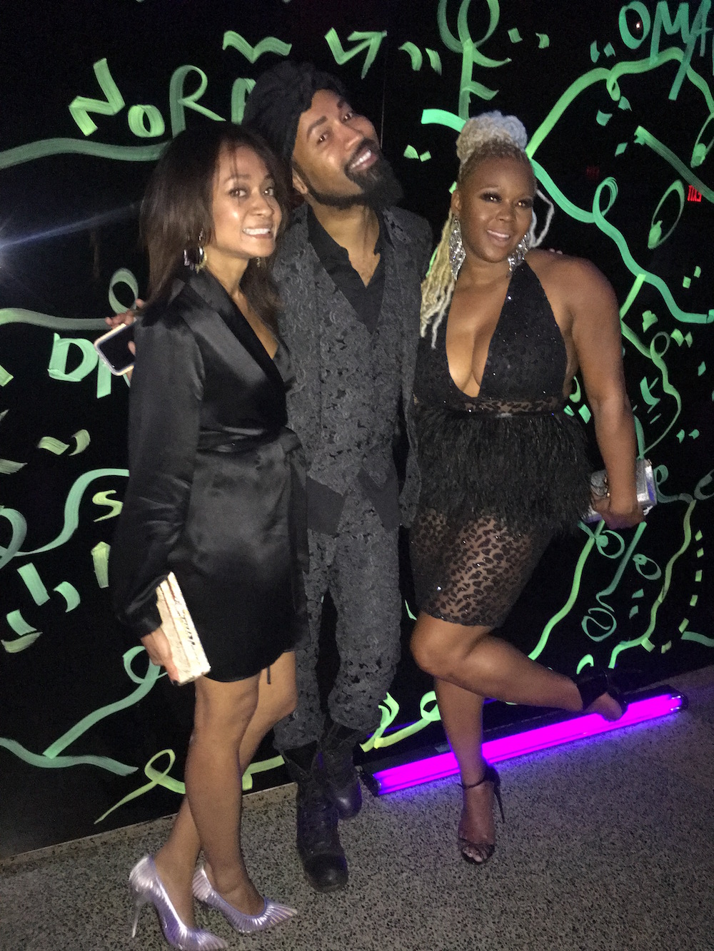 Glow Maven and Fashion Bomb friend Latham Thomas looked bomb in a black Nicholas dress and Valentino Rockstud heels.