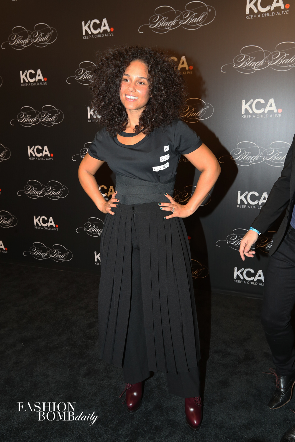 Lastly, the woman of the night went for understated in a pleated skirt over pants, and a Public School tee that read, “We Need Leaders.” Indeed.