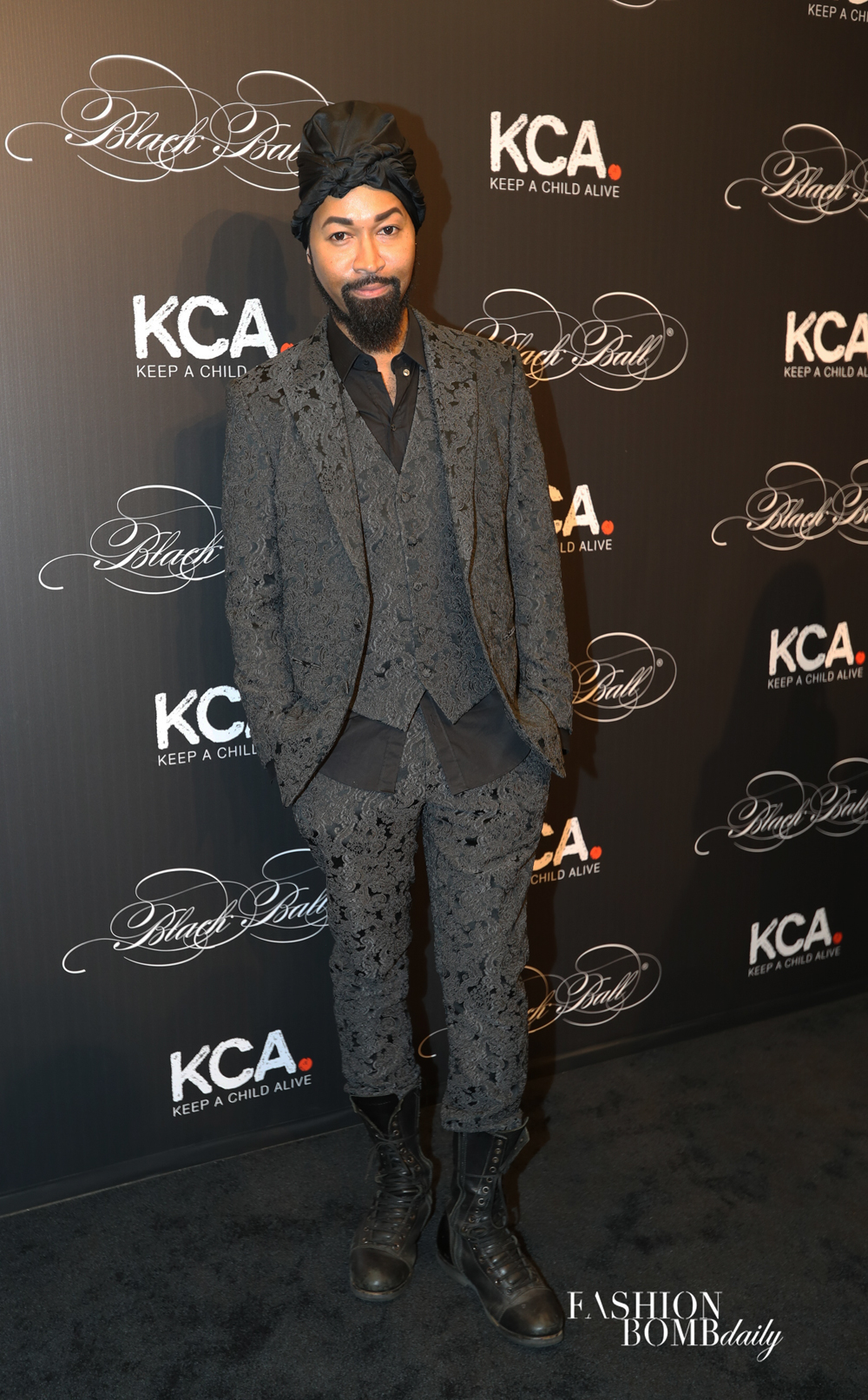 Stylist and BeautyLifeFun Special Project Director Ty Hunter worked a turban with a Dolce & Gabbana suit.