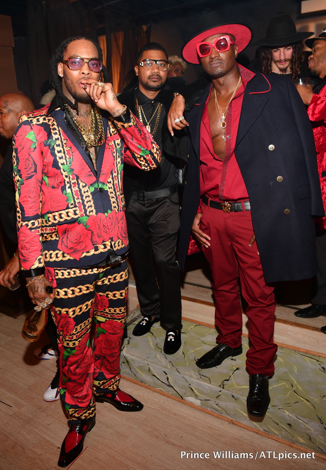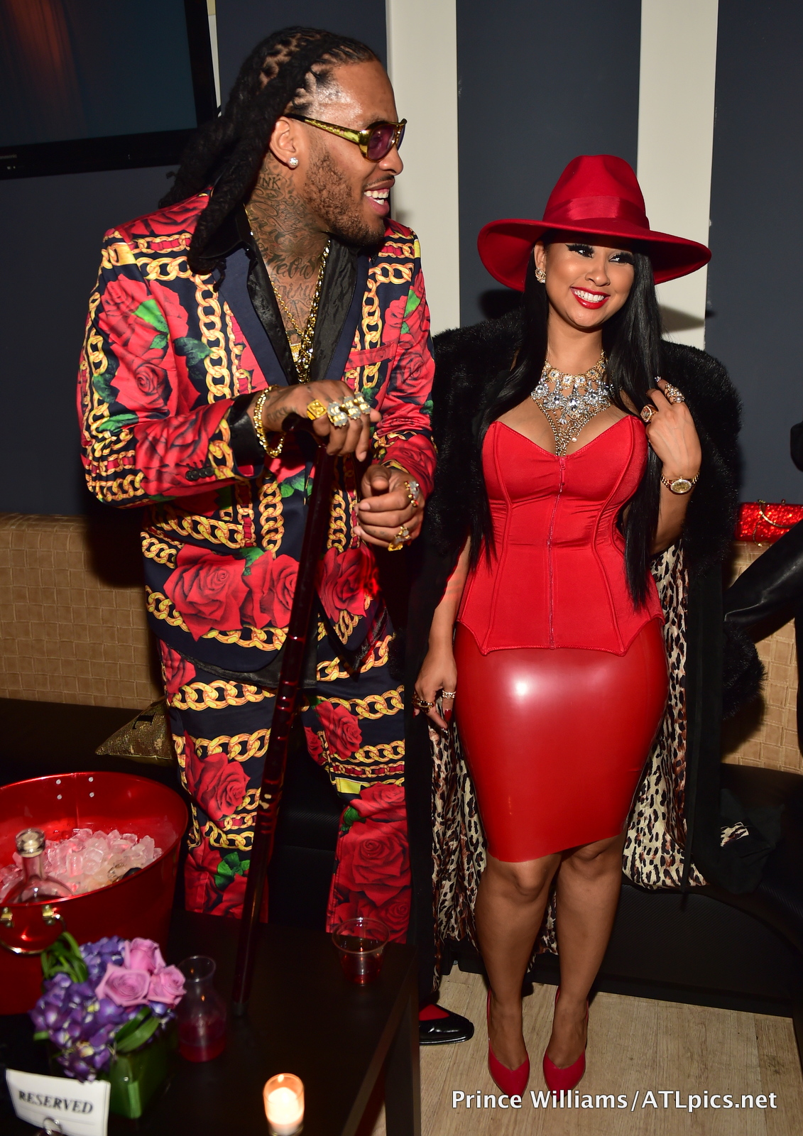 She grabbed a pic with Tammy Rivera and Waka Flocka, who killed the theme, with Tammy in a body hugging red dress, fedora, and coat, and Waka in a scarf printed two piece.