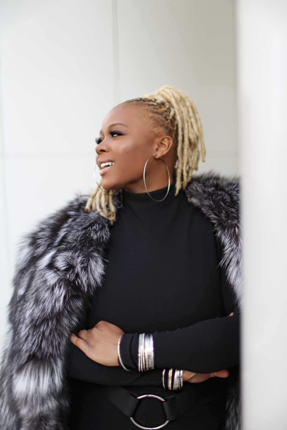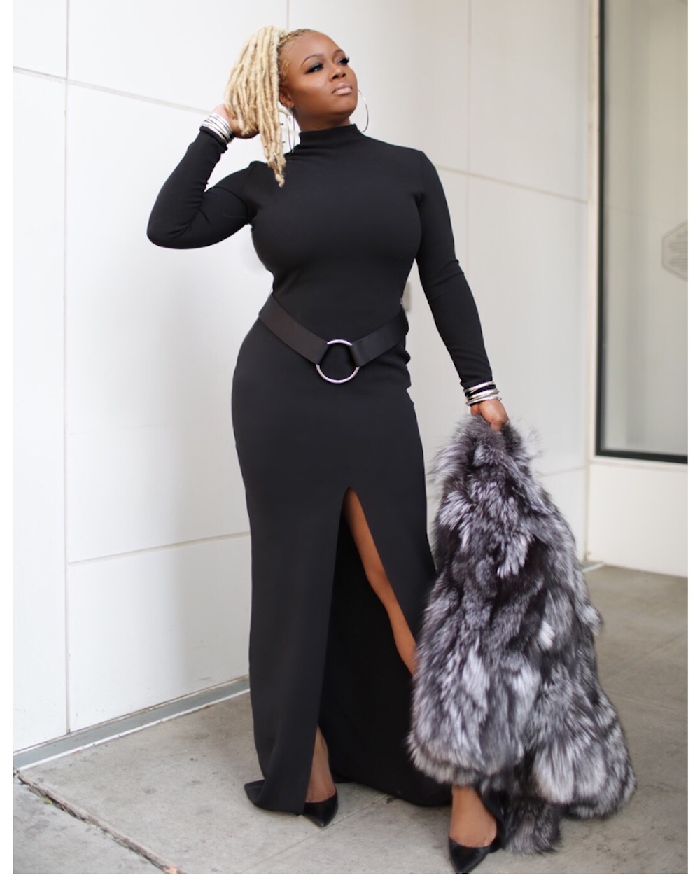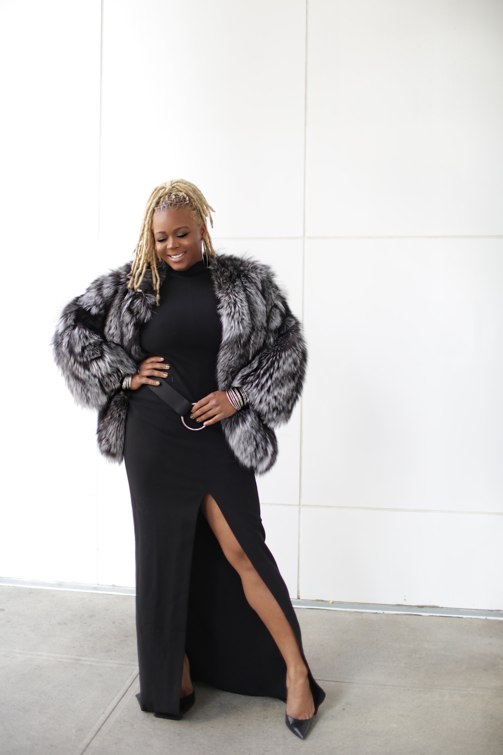 I tried to dress it down with hoops and Christian Louboutin pumps, but THEN I slipped on a fur and proceeded to be totally overdressed.LOL.