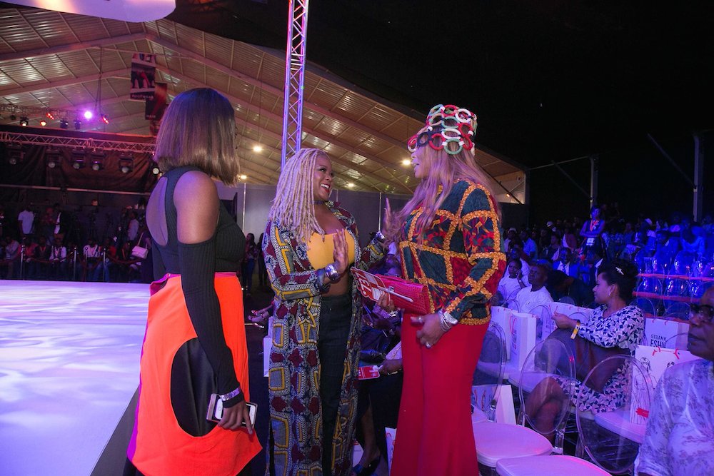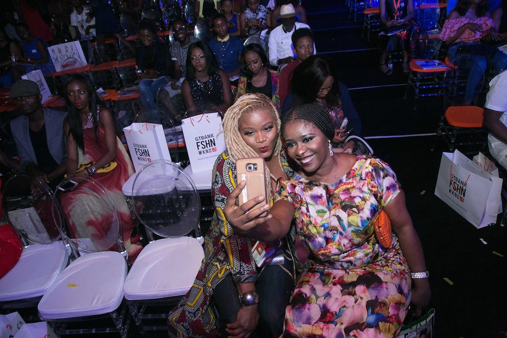 Smiled with designers and actresses, including Lanre de Silva Ayaji and Rita Dominic.