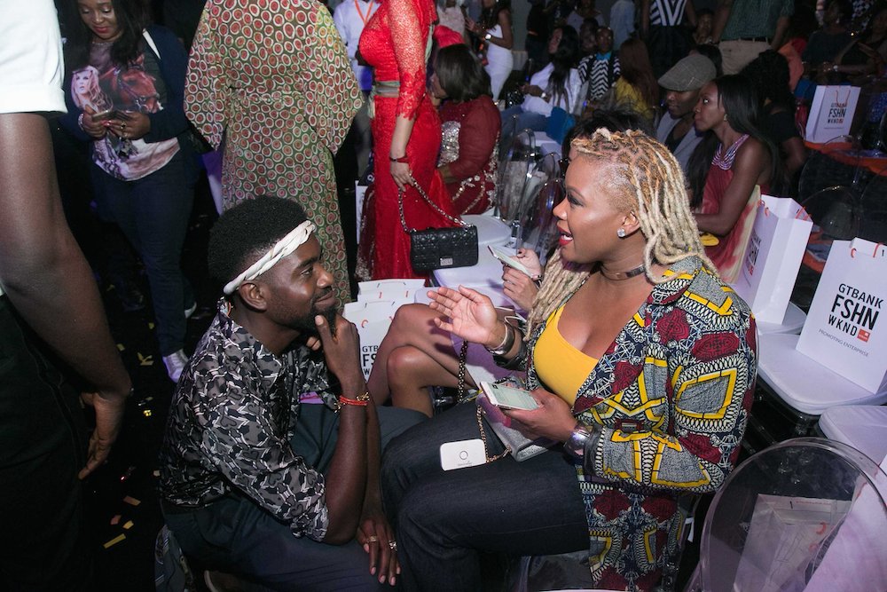 These ladies slayed the front row in gorgeous Gele head wraps and matching dresses. They were a vision.