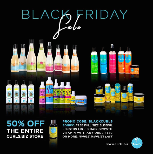 Curls girls rule the world! And thankfully, hair care brand Curls is showing love to their faithful fans and followers on Black Friday, offering 50% off their entire store at Curls.biz with the Promo Code BLACKCURLS. Stock up on leave in conditioners, shampoos, hair growth oils, and more. Bonus: Get a Free full size Blissful Lengths Liquid Hair Growth Vitamin with any order $50 or more. Hurry up and get to Curls.biz to stock up!
