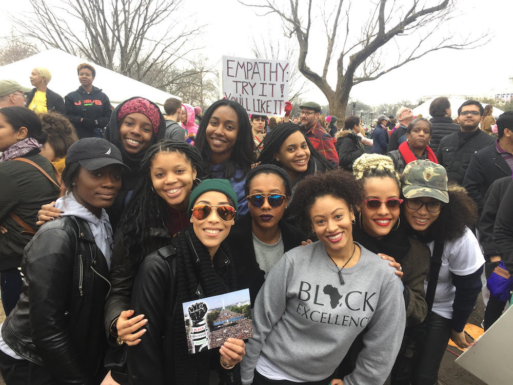 Lastly, Emani @Emanimeansfaith and friends almost made me cry through their sisterhood, translated via the image above! She wrote, “I am one of 8 in my group who came together to march on Washington DC in the millions woman’s march. There wasn’t a seat at the table for us when this march was first organized. But we made one, and we showed up and stood united with everyone who needed their voices heard. This was the most empowering event I’ve attended this year thus far. I especially felt chills when I knew Angela Davis was marching with us. We are our mothers and grandmothers children and now it is our time to do our part.”