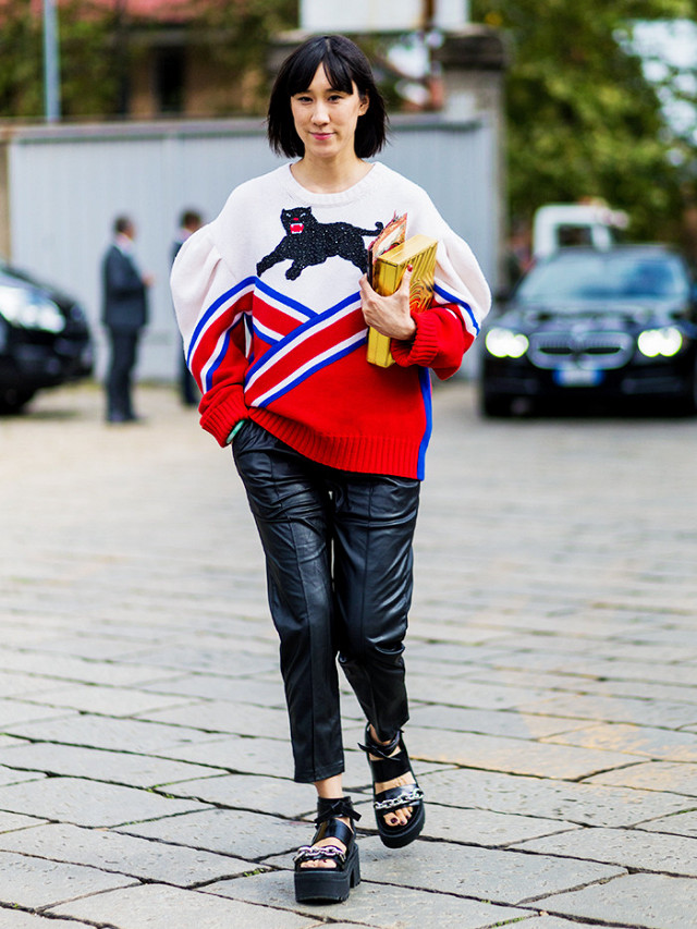 Instagram’s very own Eva Chen made a serious sartorial statement statement in a $4,300 Gucci appliqué cheerleading sweater.