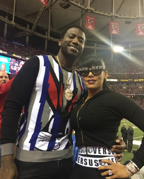 Gucci Mane smiled next to fiancée Keyshia Kaior in a Bugs Bunny striped top.