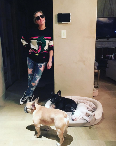 Lady Gaga smiled with her pumps in a Dinosaur option by Saint Laurent.