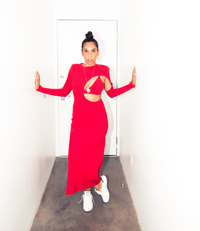 In reference to her style, she says to Refinery29, “I like to play with clothes and dress according to how I feel that particular day. I’m very much a tomboy, but I wear heels to balance that out. I actually live in heels, and I’m trying to work into a lower form of footwear at the moment. On that note, since I’m typically in a rush, I like easy things that you don’t have to think too much about, like jumpsuits. Also, I just love a good outfit, so when I find pieces that work together, I’ll wear them a few days in a row. But, I love clothes and I love getting dressed. If I’m not happy with my outfit, it’s not a good day. In general, I really just dress for me, so I feel confident and good about myself.”