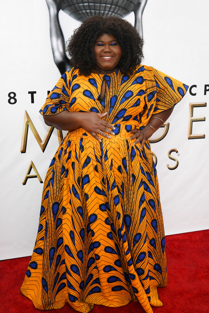 Another look I loved: Gabourey Sidibe in an African printed Ofuure dress.