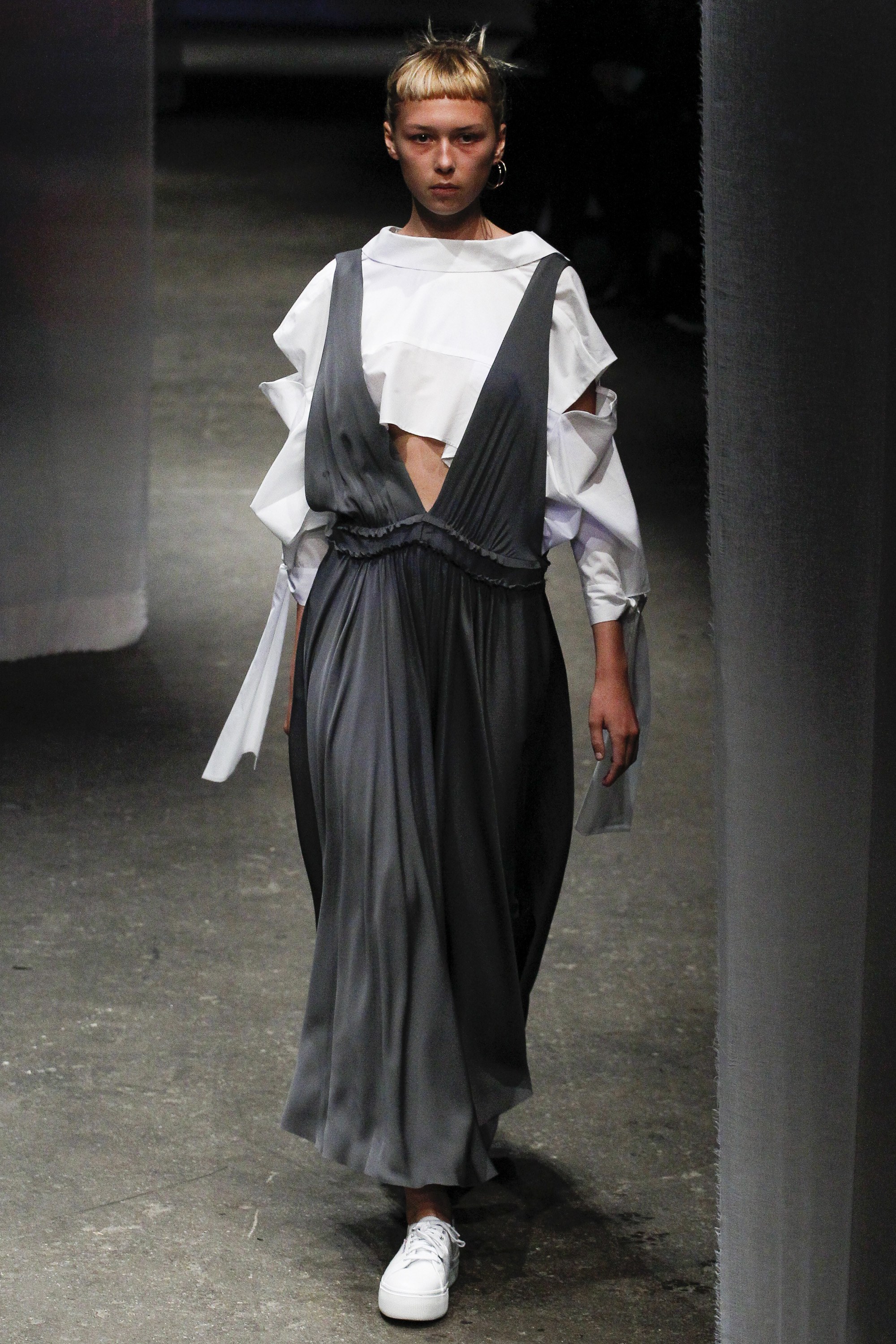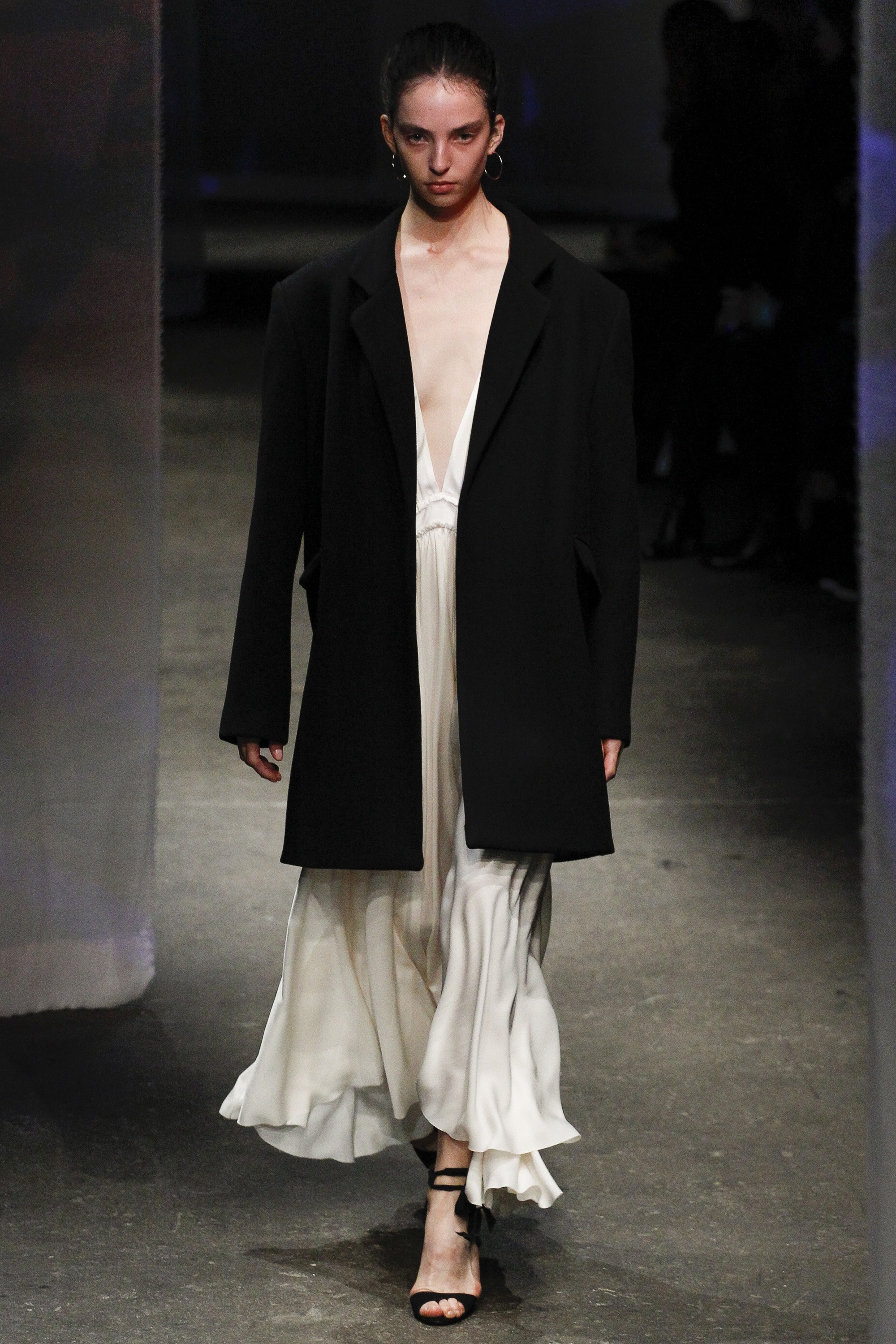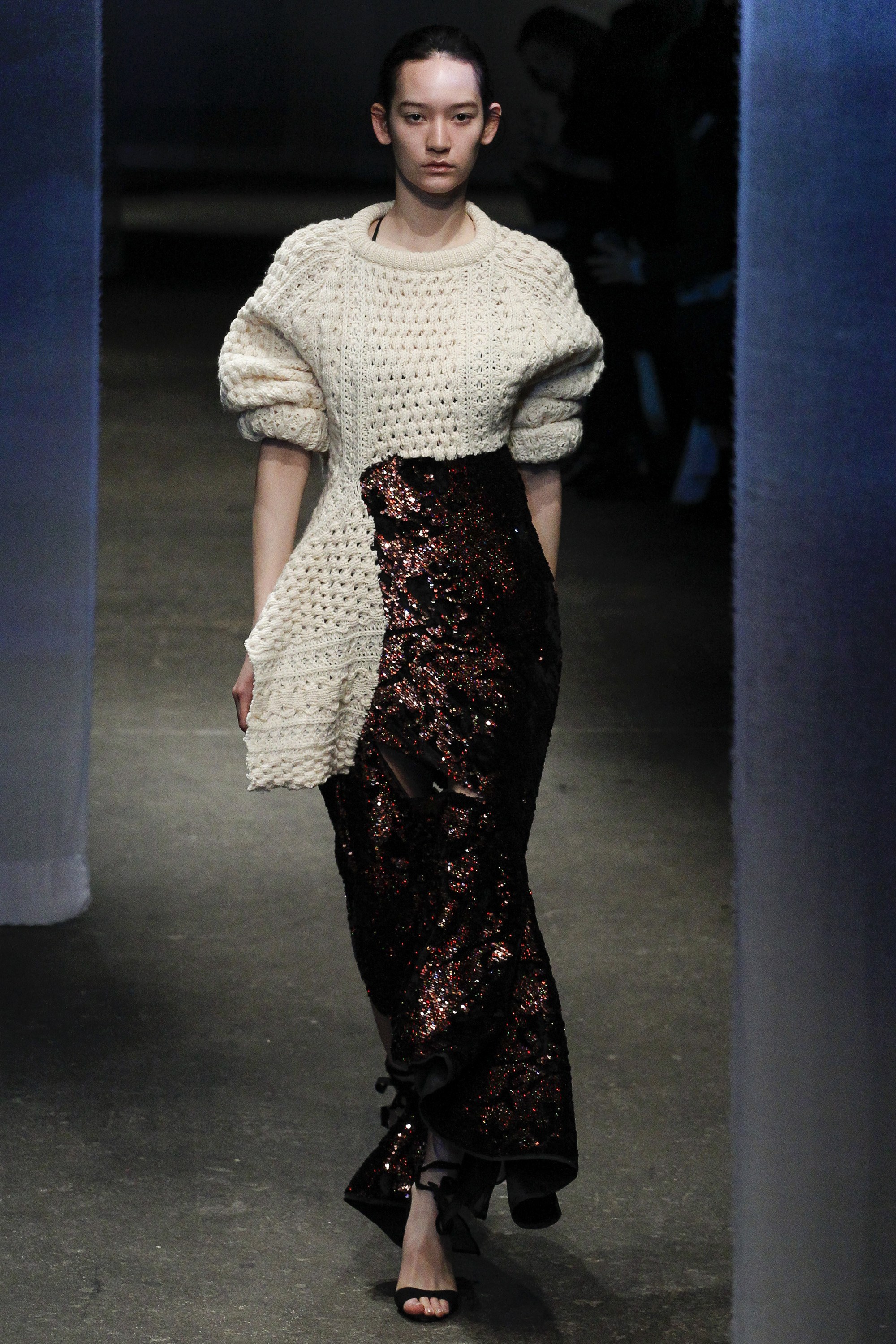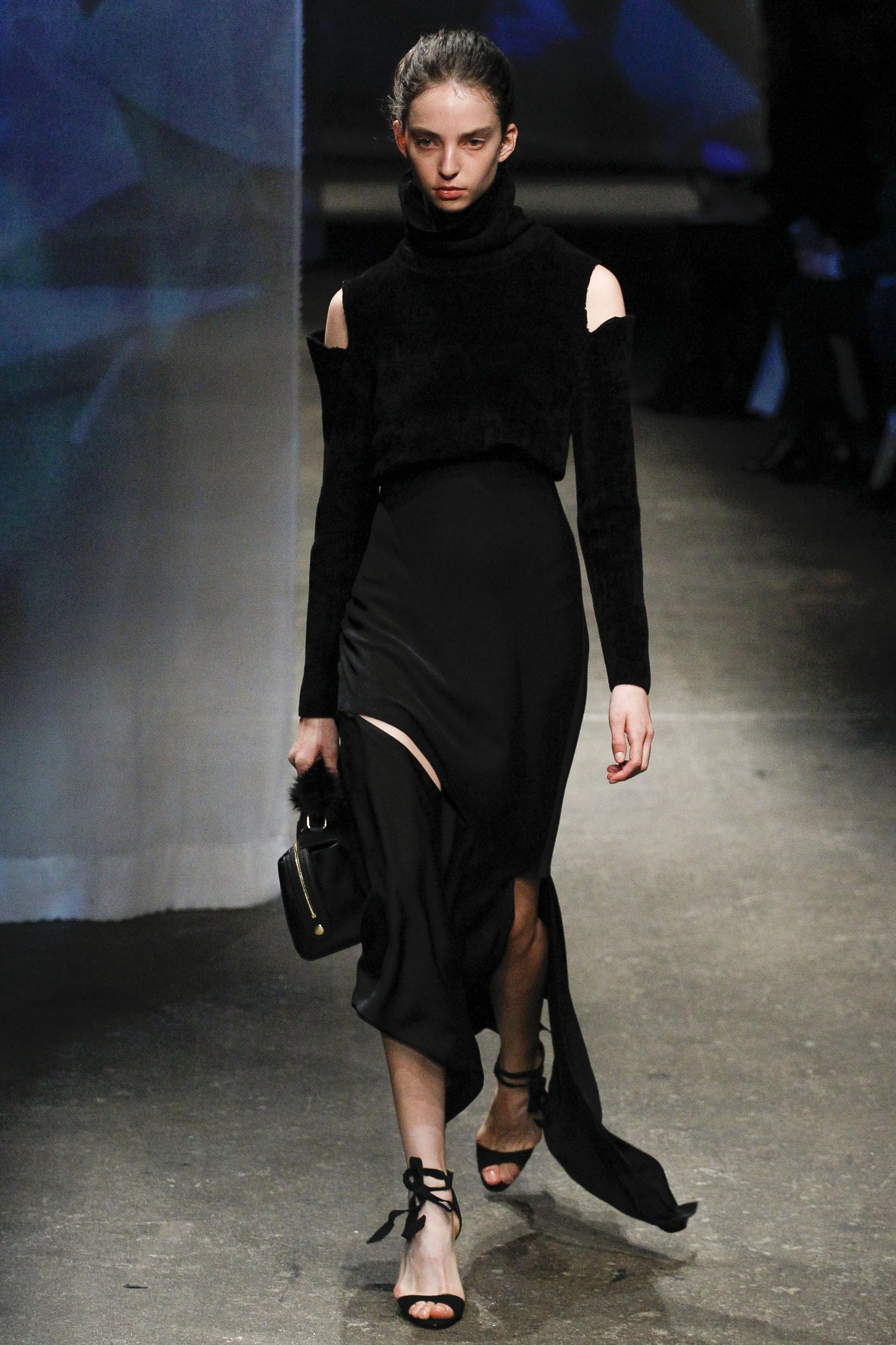 She channeled that divided and torn sentiment into ensembles that were quite literally fragmented, though done rather beautifully. The cutout shoulders on a cozy cropped turtleneck, sultry double slits on a slinky LBD, the asymmetric button placket on a white shirt—the designs were essentially modern-day riffs on wardrobe staples as we know them.