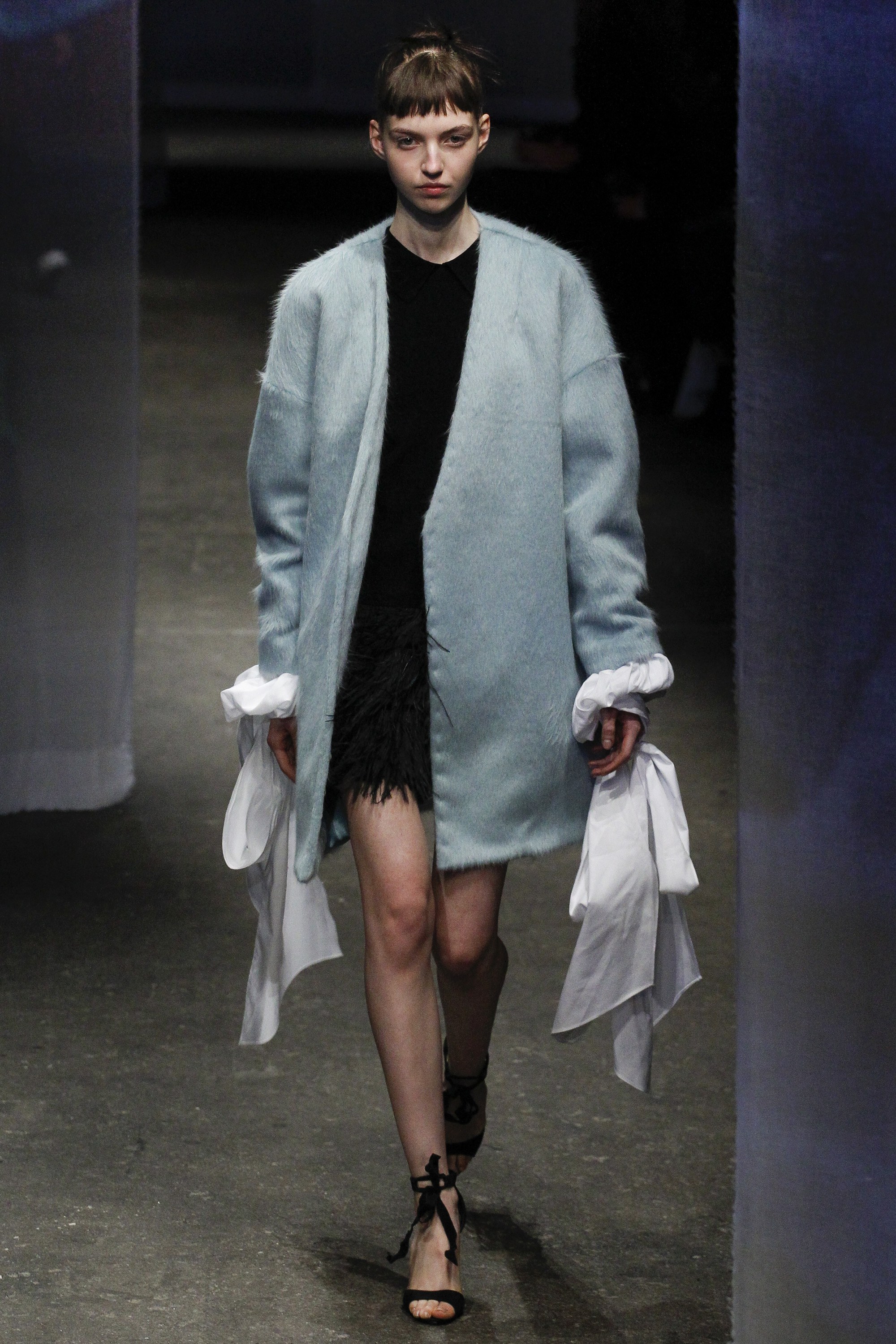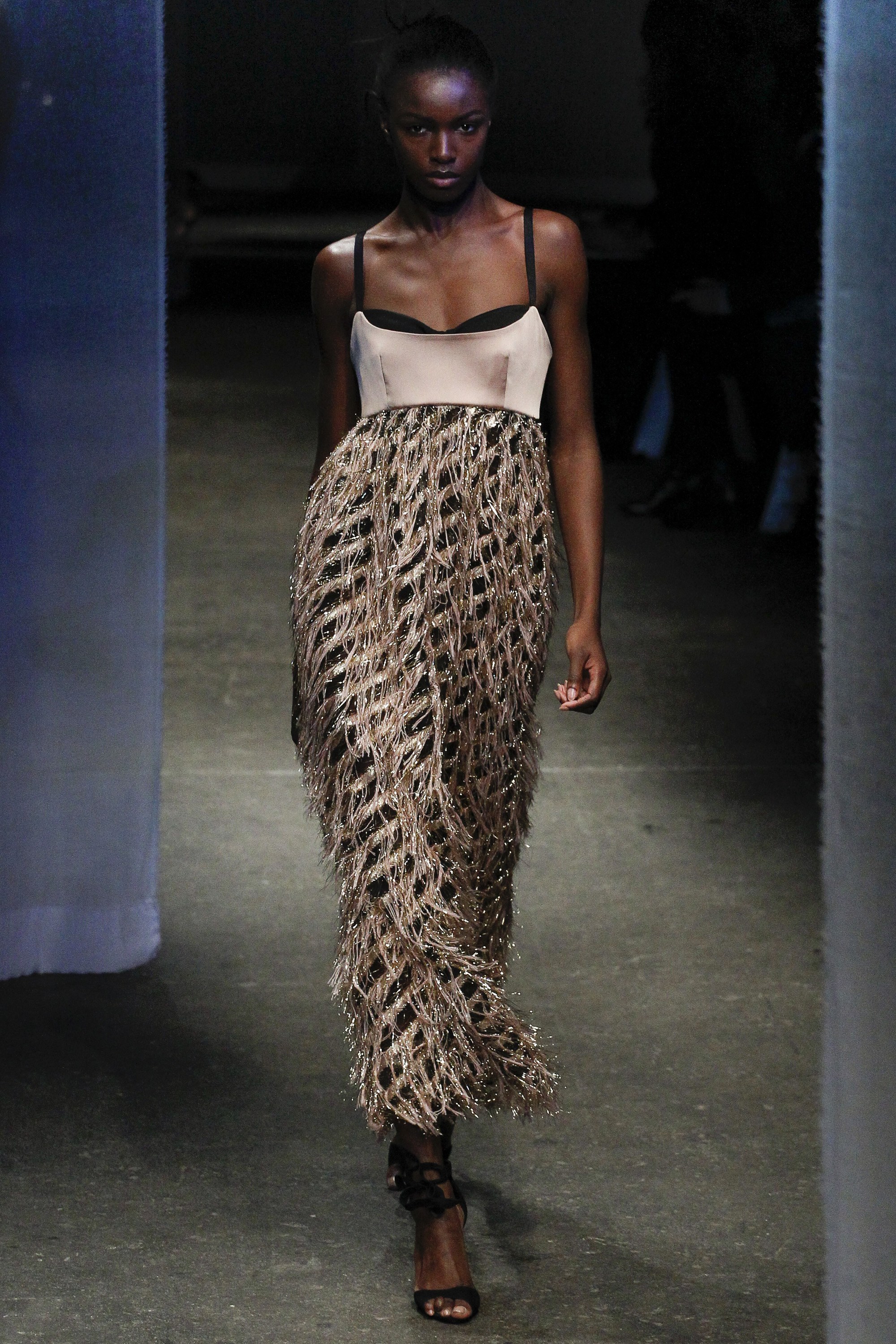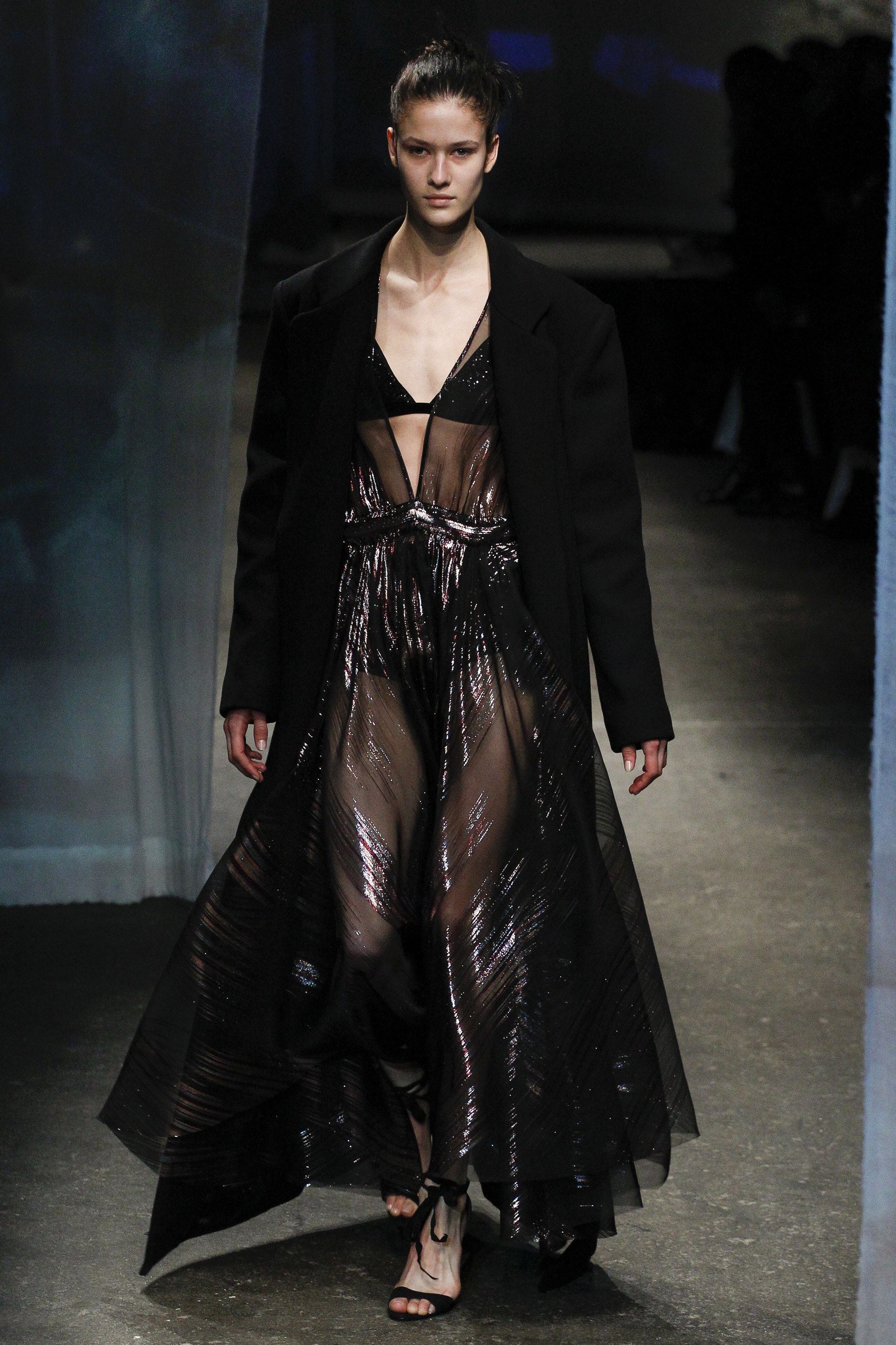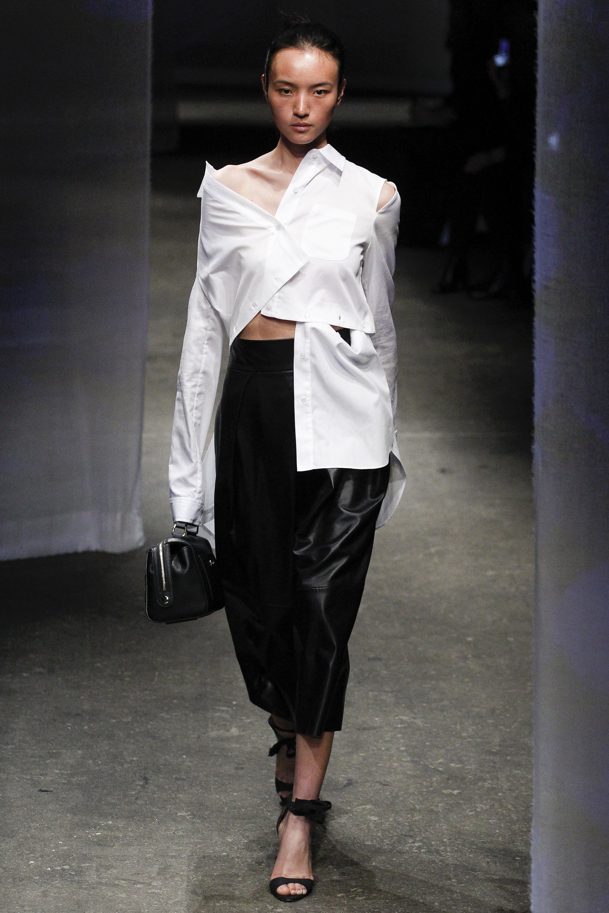 She channeled that divided and torn sentiment into ensembles that were quite literally fragmented, though done rather beautifully. The cutout shoulders on a cozy cropped turtleneck, sultry double slits on a slinky LBD, the asymmetric button placket on a white shirt—the designs were essentially modern-day riffs on wardrobe staples as we know them.