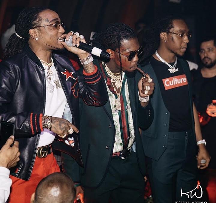 Migos member, Offset, was spotted at the GQ Grammy’s after party clad in a $980 Gucci Birds of Prey Print Silk Twill shirt and $400 aviator sunglasses, also by the brand: