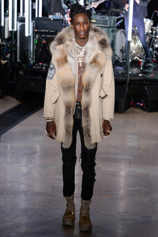 Plein flew Young Thug in from his tour in Manchester, UK to model one look for the show.