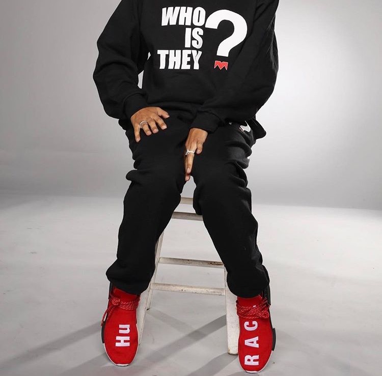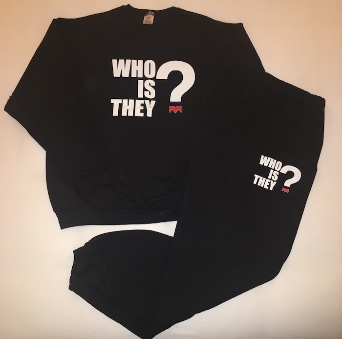 Her sporty-chic ‘fit features the cheeky phrase, “Who is They?” emblazoned on the sweatshirt and pants.