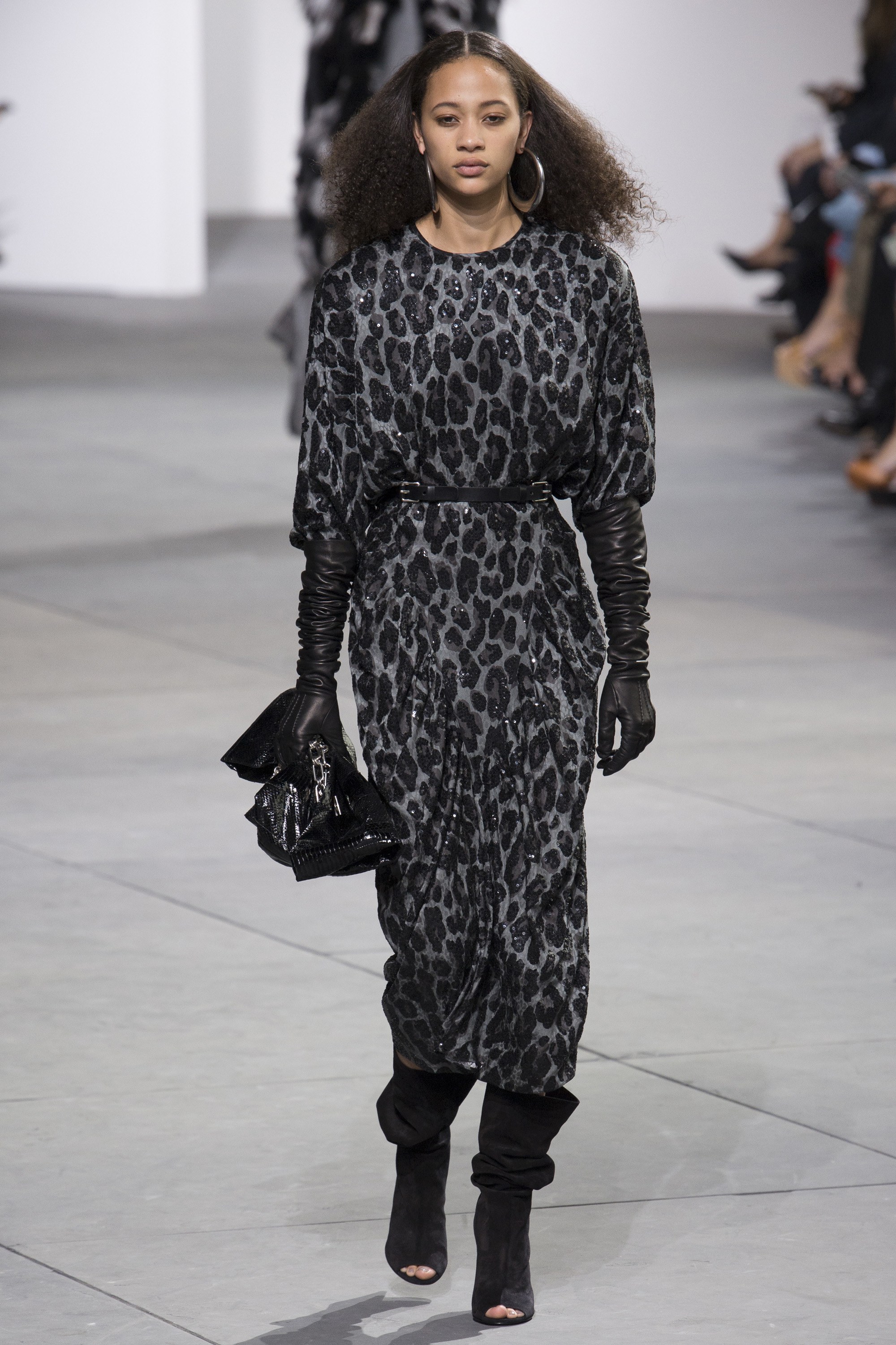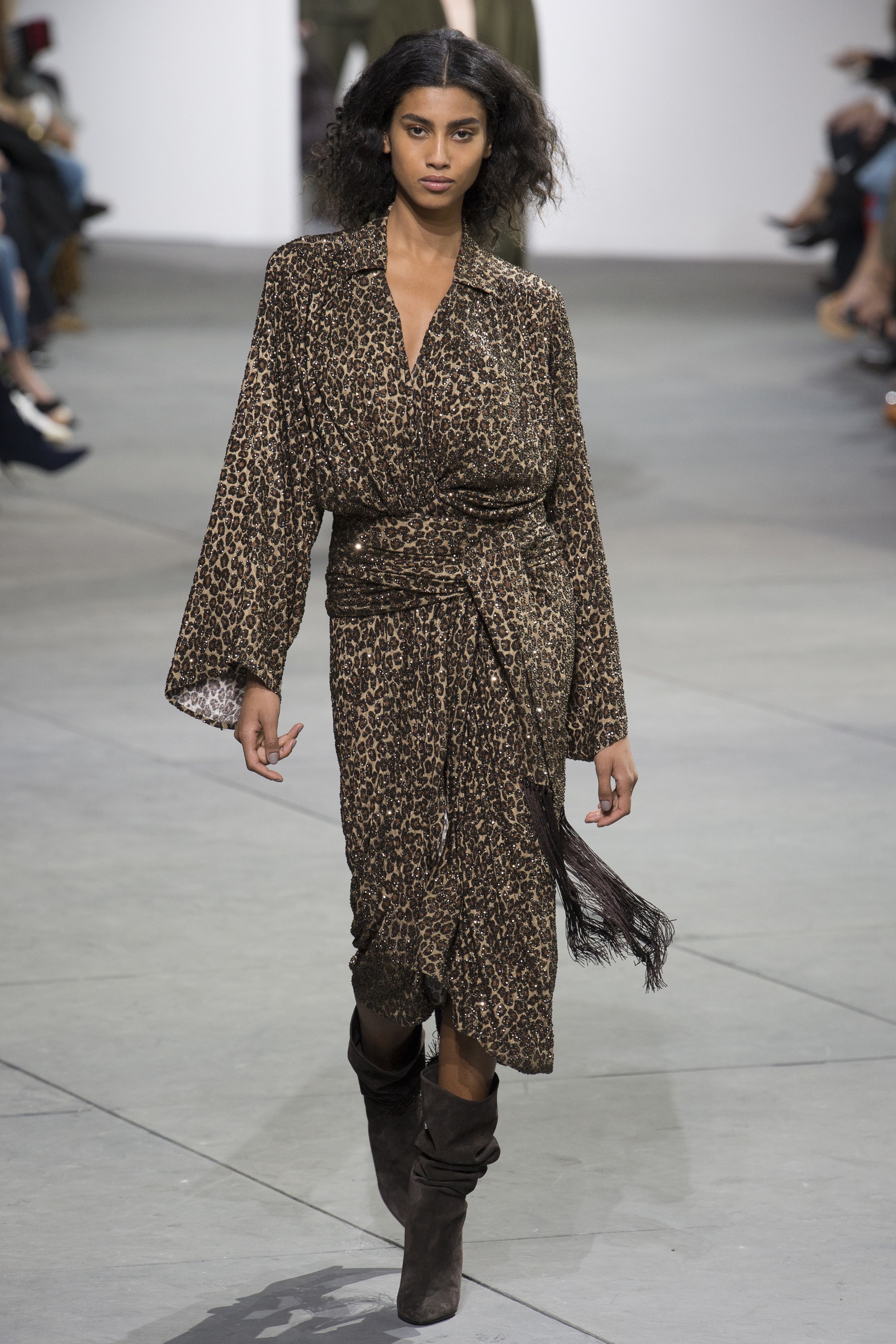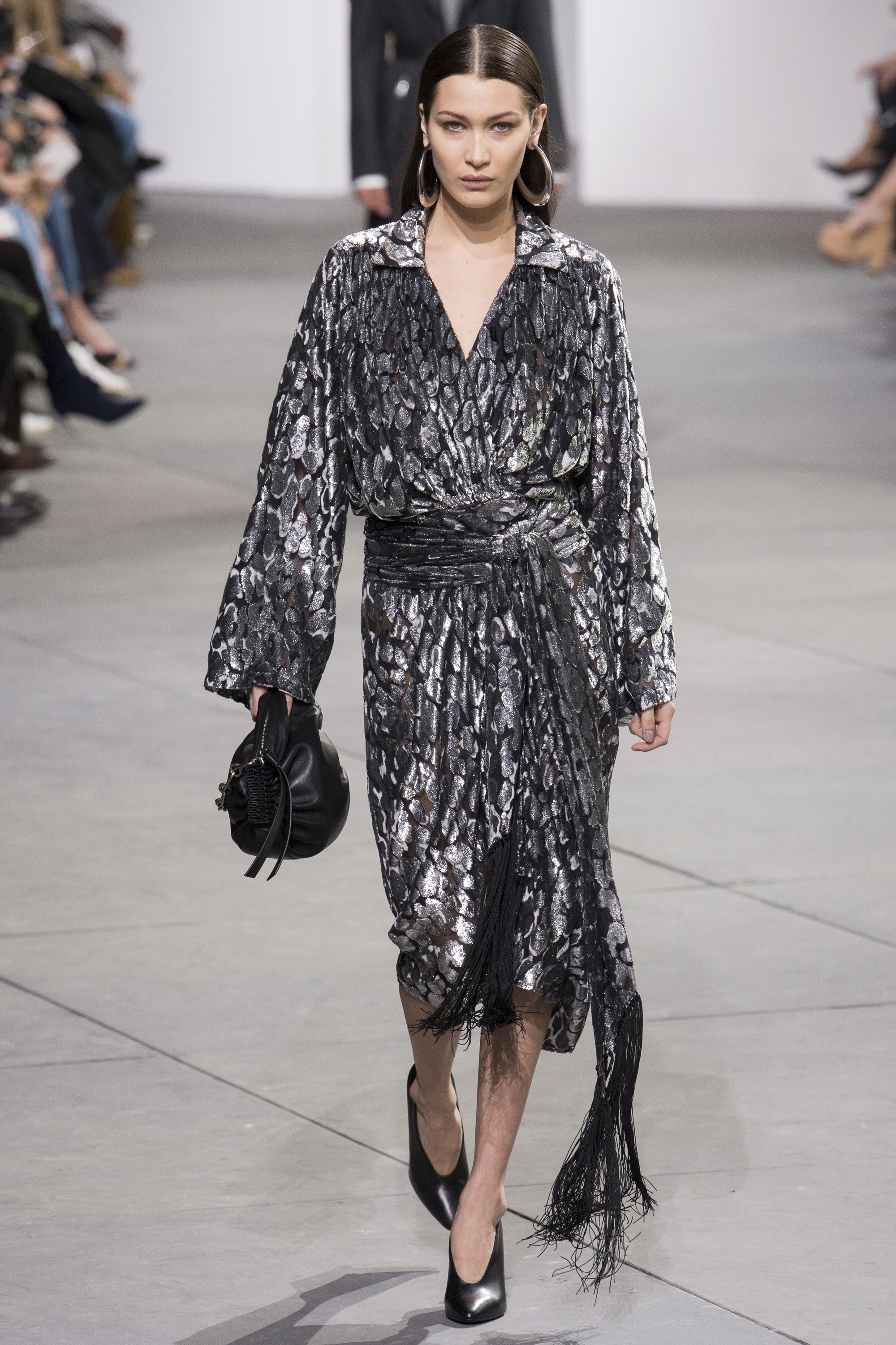 And as usual, the model lineup for the collection was serious. Bella Hadid modeled a shimmering tie-waist dress that will work for a number of shapes and sizes, while Selena Forrest was fierce in leopard.