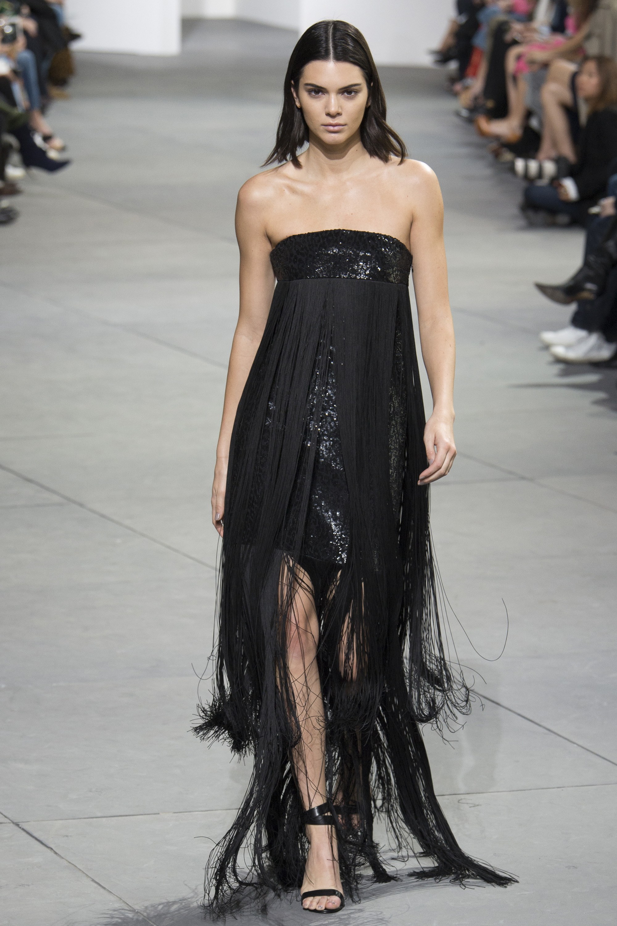 And Kendall Jenner closed the show in a sequin and fringe number that may just be seen on the Oscars red carpet.