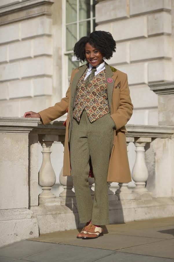 Last but not least, this stylish young lady showed us that girls can be dapper too! She wore an olive green 3-piece suit with a beige overcoat and oxford shoes.