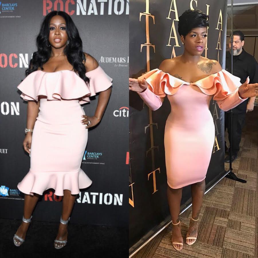 We love a fashion show down! Remy Ma attended the Roc Nation event last weekend clad in a $90 ‘Sex in the City’ Intertwine Collection dress. Fantasia was spied in a similar version, also by the brand: