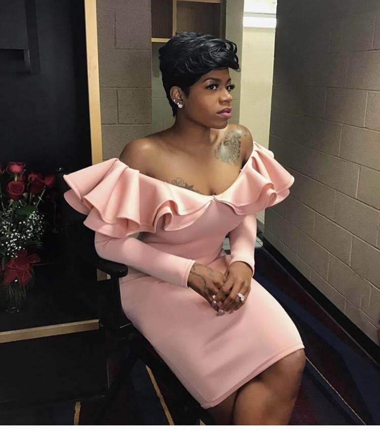 Fantasia went for nude sandals and her signature short hair cut.