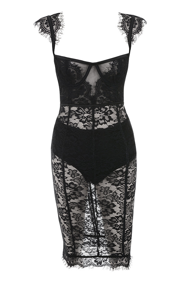Delicate lace panels and mesh combine beautifully to create this feminine yet sexy dress.