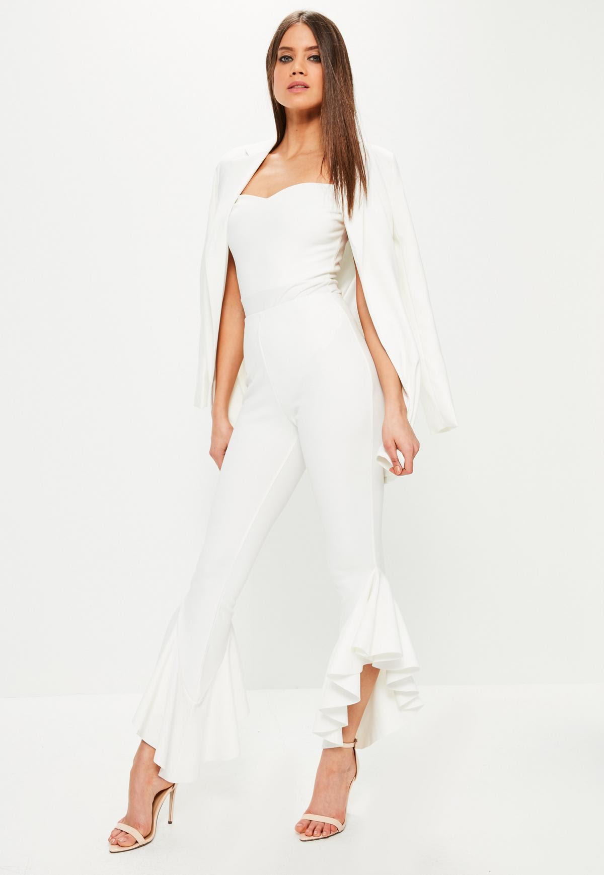 This week we’re focusing on all things ruffles, an classic trend that never goes out of style. Get into Missguided’s $40 White Draped Frill Side Cigarette Pants: