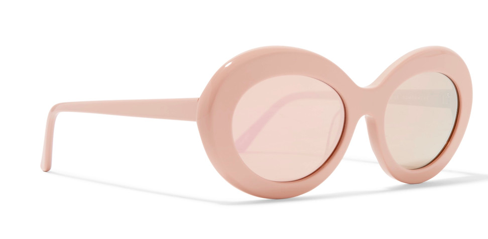 Sunday Somewhere’s sunglasses are based on a pair worn by “one of the more famous Kurts in history.” This version has blush oval frames handcrafted from smooth and glossy acetate. The chic mirrored lenses provide total UV protection.