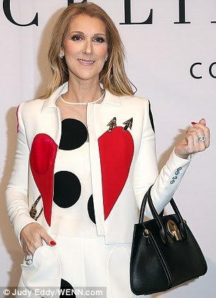 Celine Dion looked radiant at the unveiling of her new bag collection in Las Vegas dressed in an Elsa Schiaparelli Spring 2017 Couture ivory short and suit ensemble: