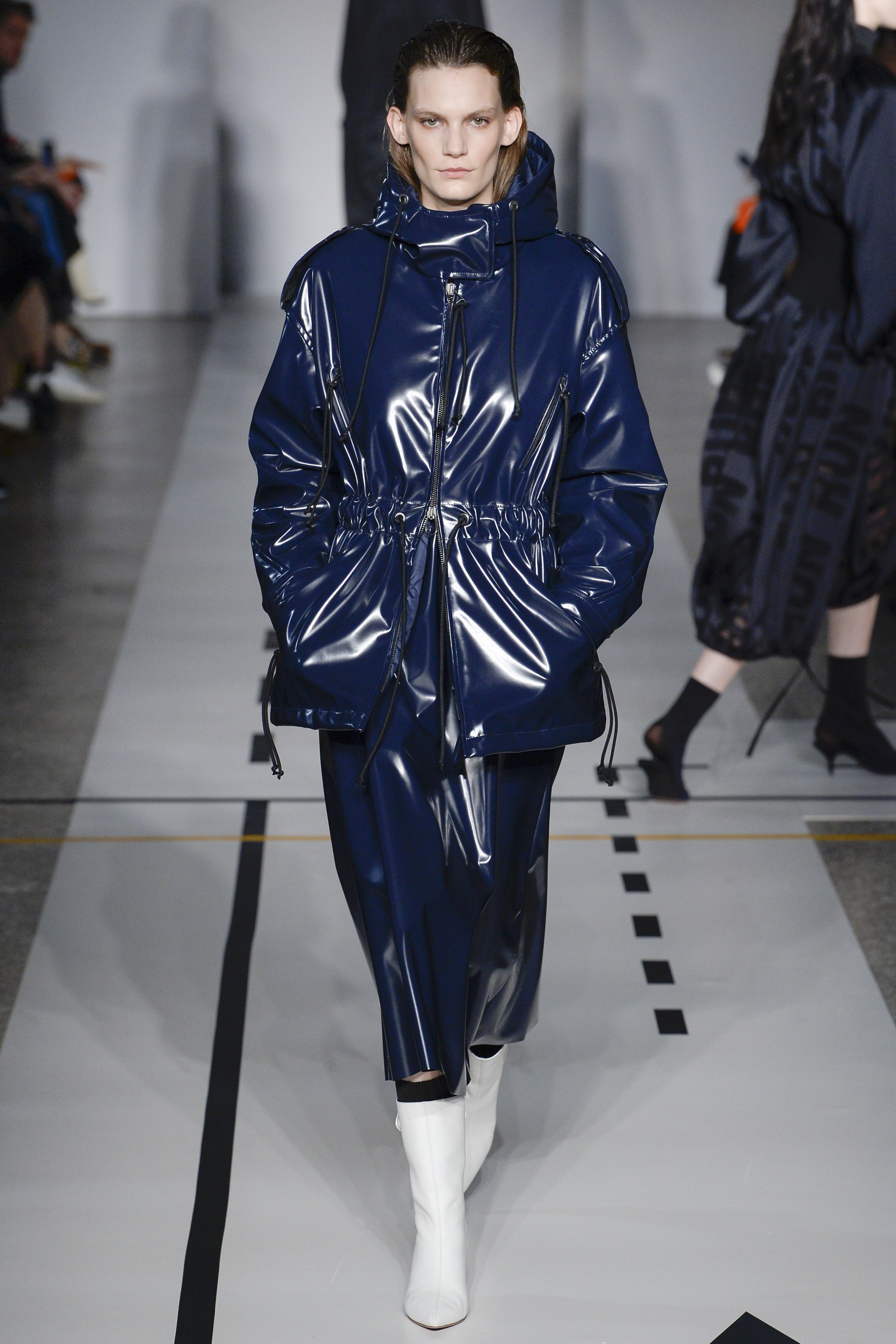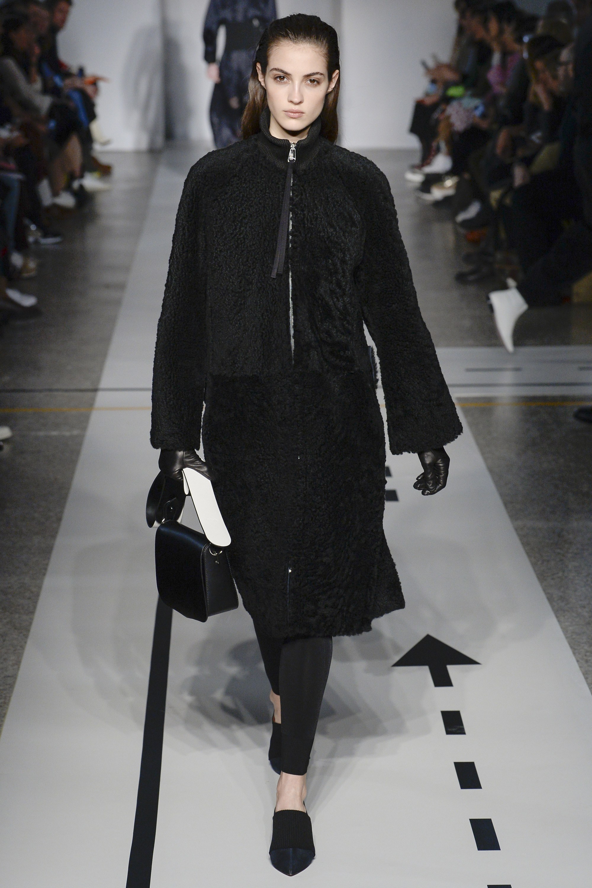 As is requisite for the season, outerwear was a big focus with cozy, fur coats and zip-front designs, as well as glossy patent leather pieces taking centerstage.