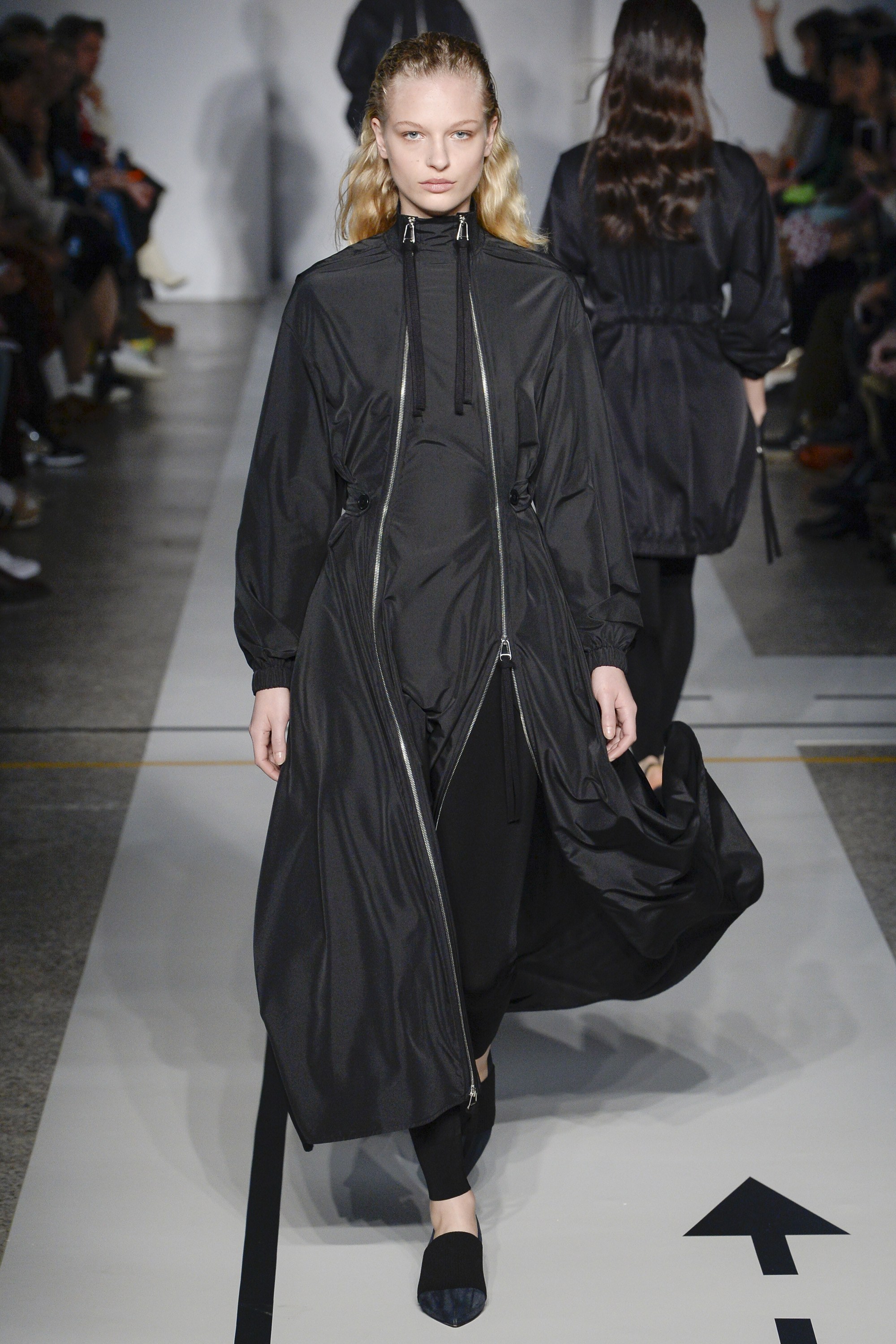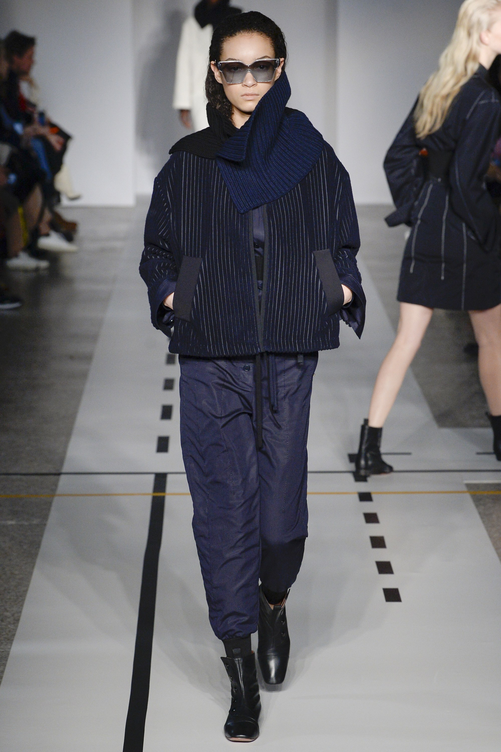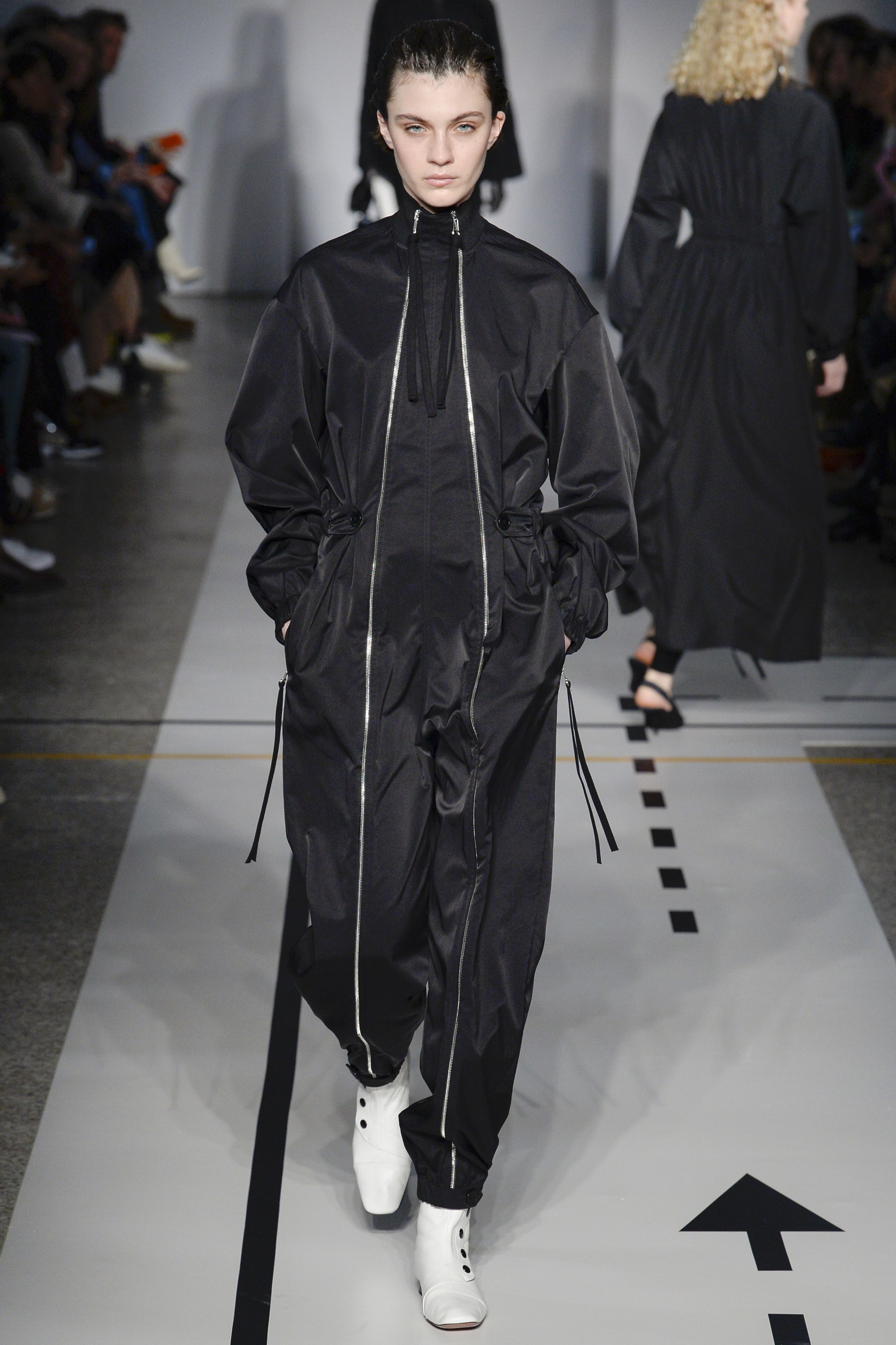 Track pants and zip-front dresses inspired by anoraks played into that athletic-influenced vibe. But when paired with ankle boots and pointed-toe flats, that vibe switched more to having fun than breaking a sweat.