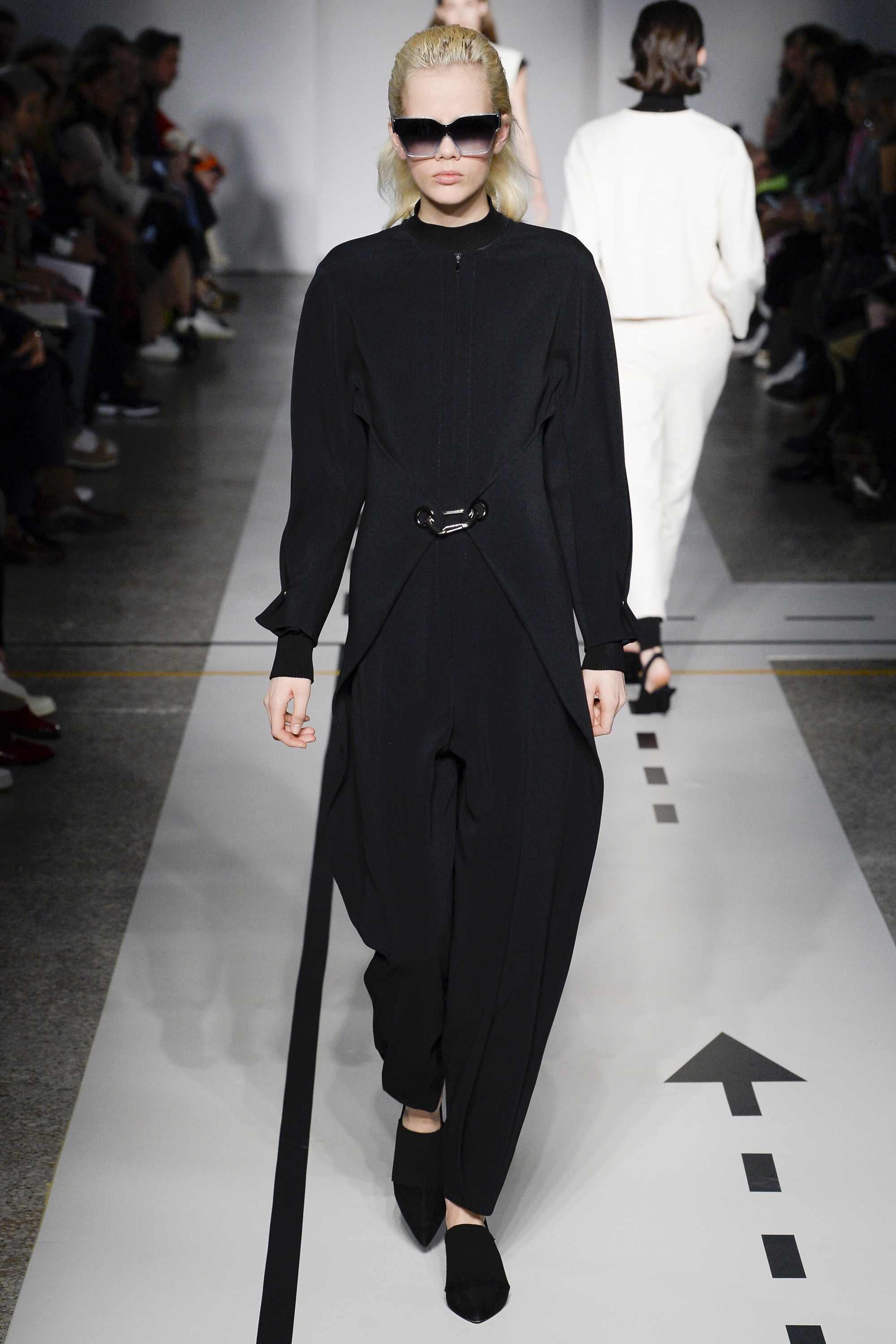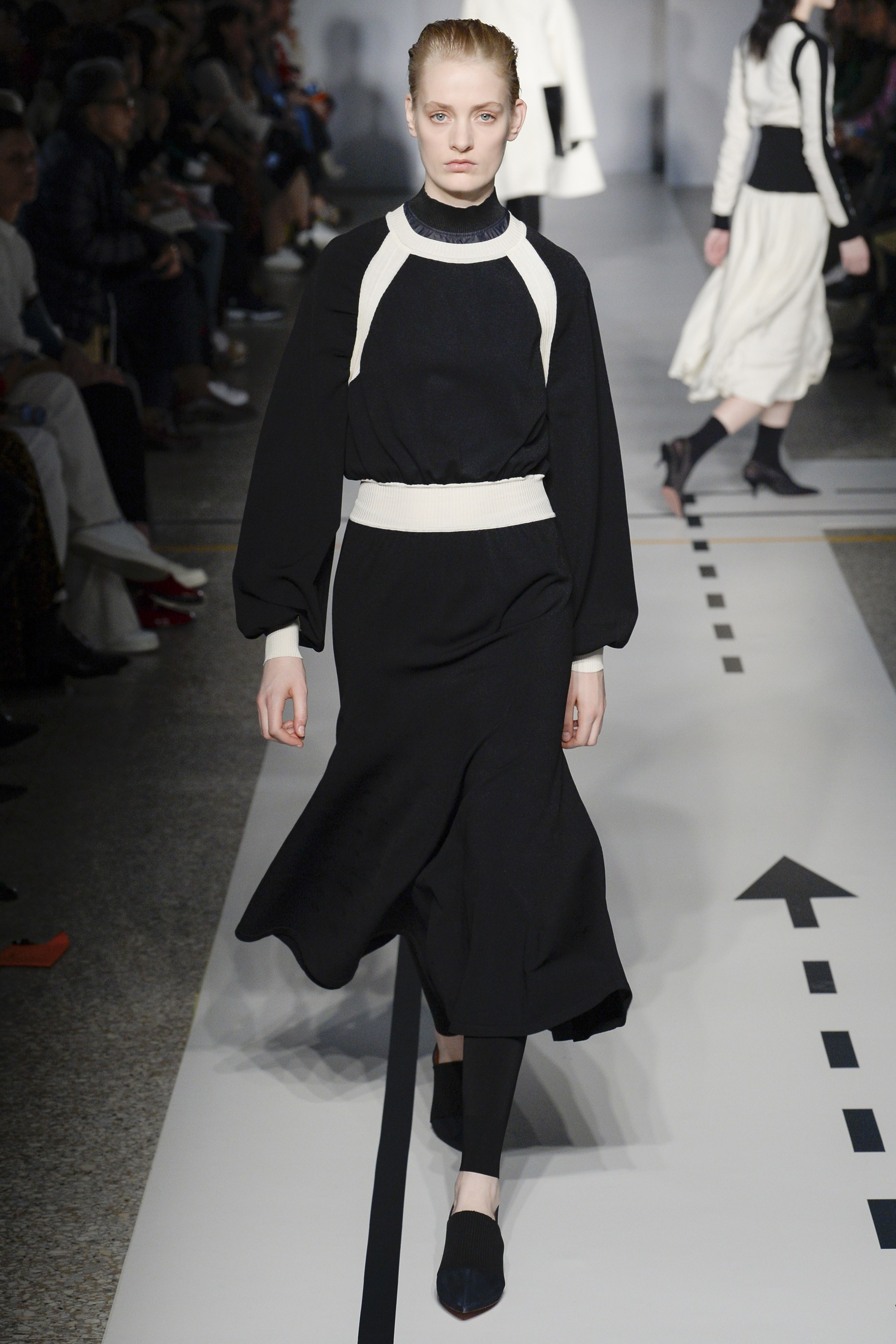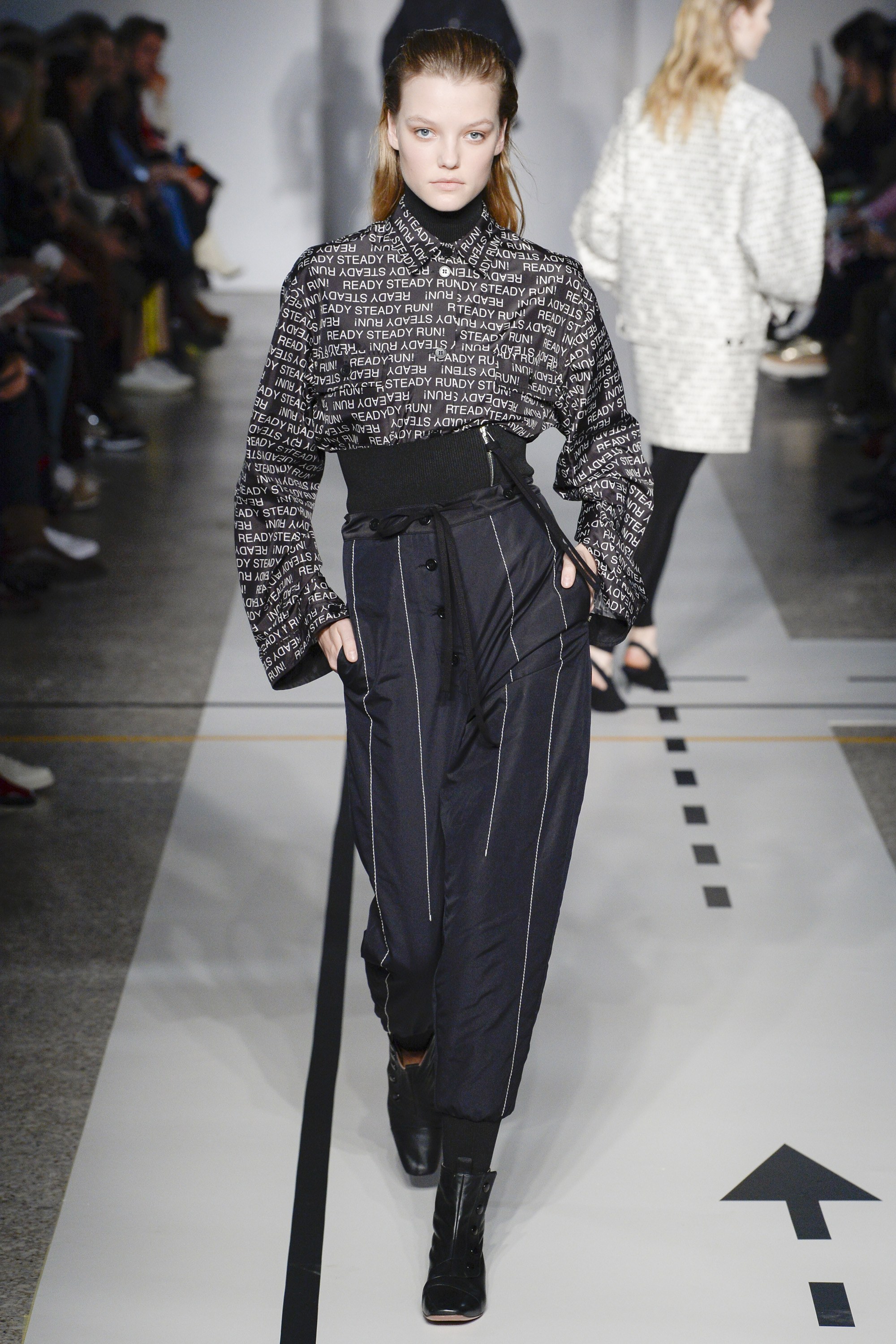 Track pants and zip-front dresses inspired by anoraks played into that athletic-influenced vibe. But when paired with ankle boots and pointed-toe flats, that vibe switched more to having fun than breaking a sweat.