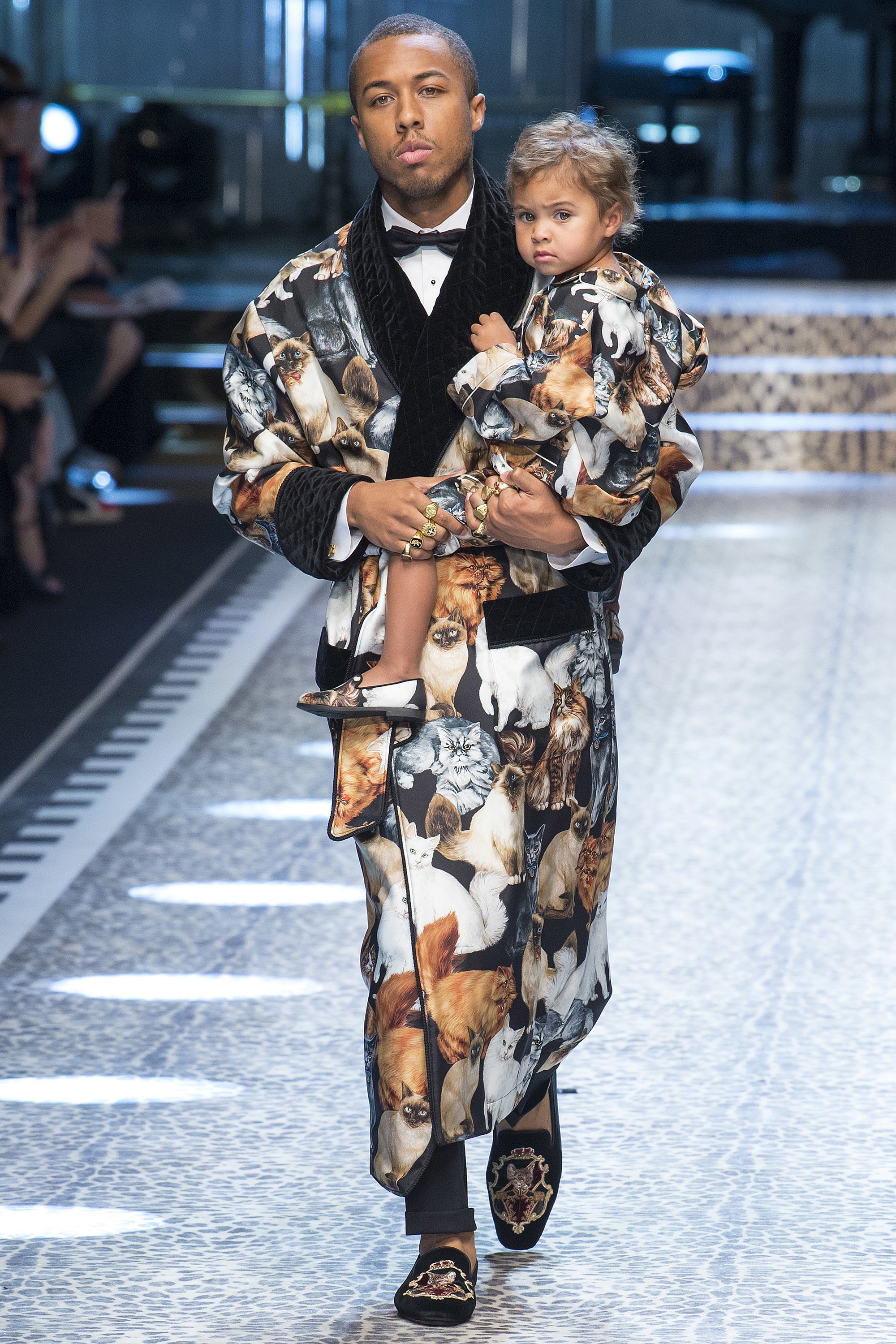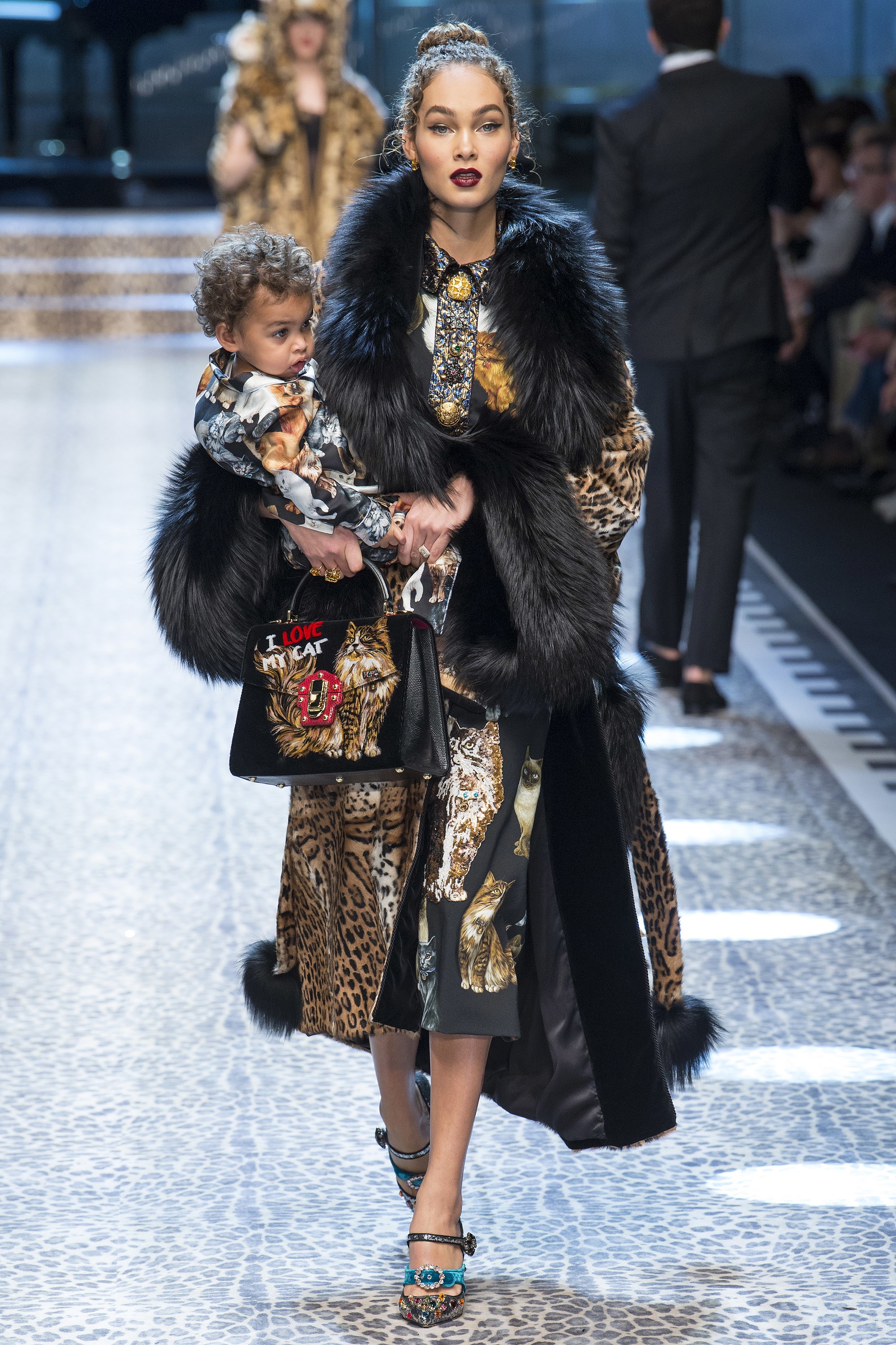 It was a family affair for Dolce & Gabbana’s Fall 2017 season, as mothers, daughters, sons, and babes took to the catwalk at today’s show in Milan. While European royal families and rock music legends were on the roster, the most identifiable faces (for us anyway) were Marjorie Harvey, Jason Harvey, and Amanda Harvey.