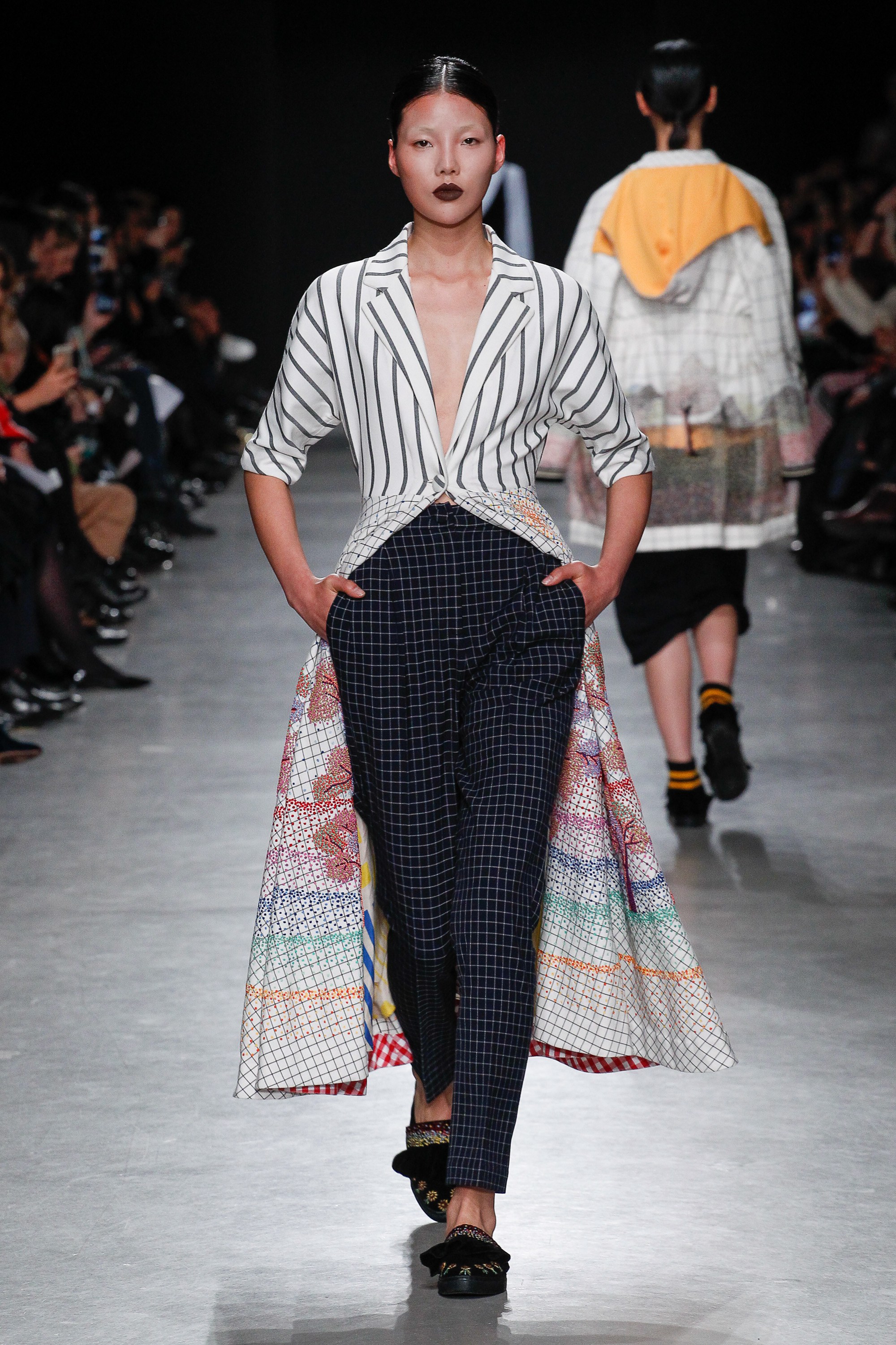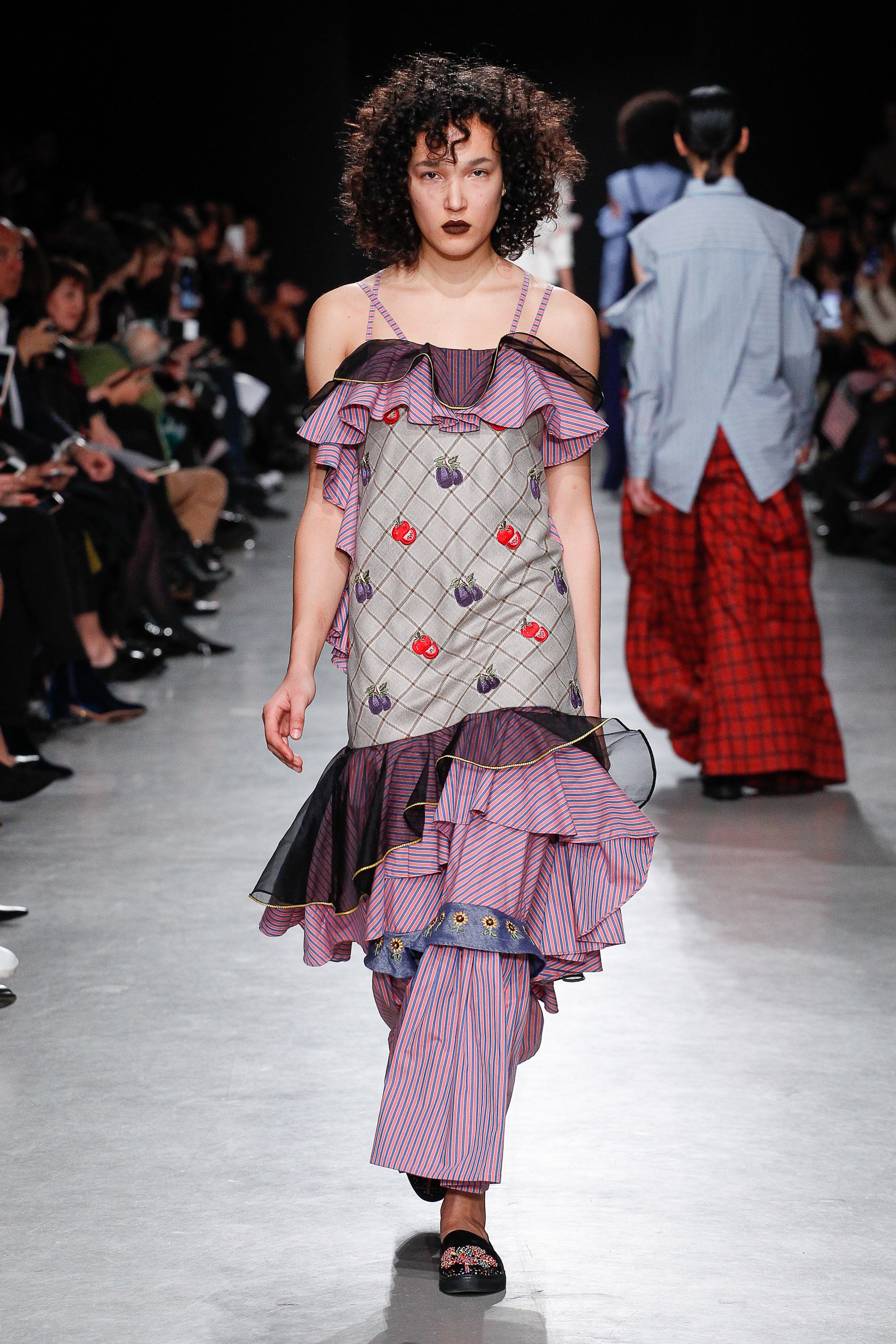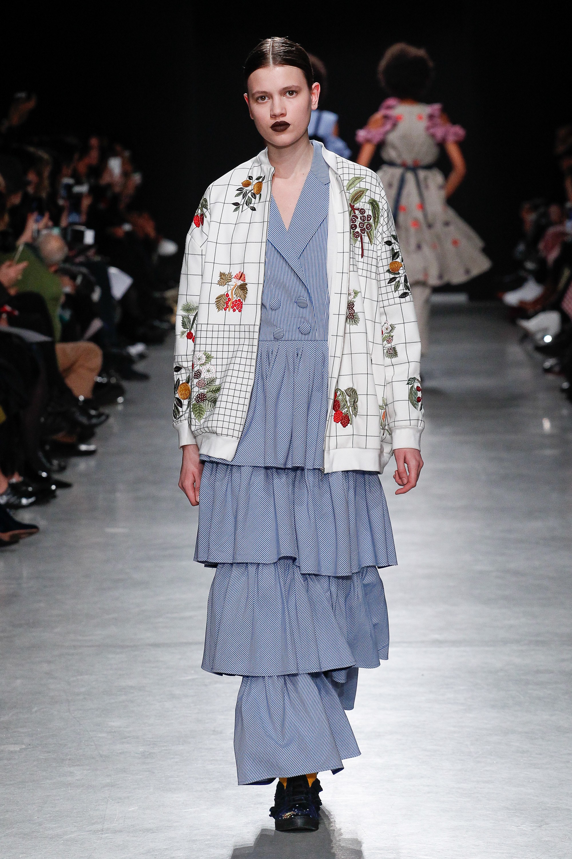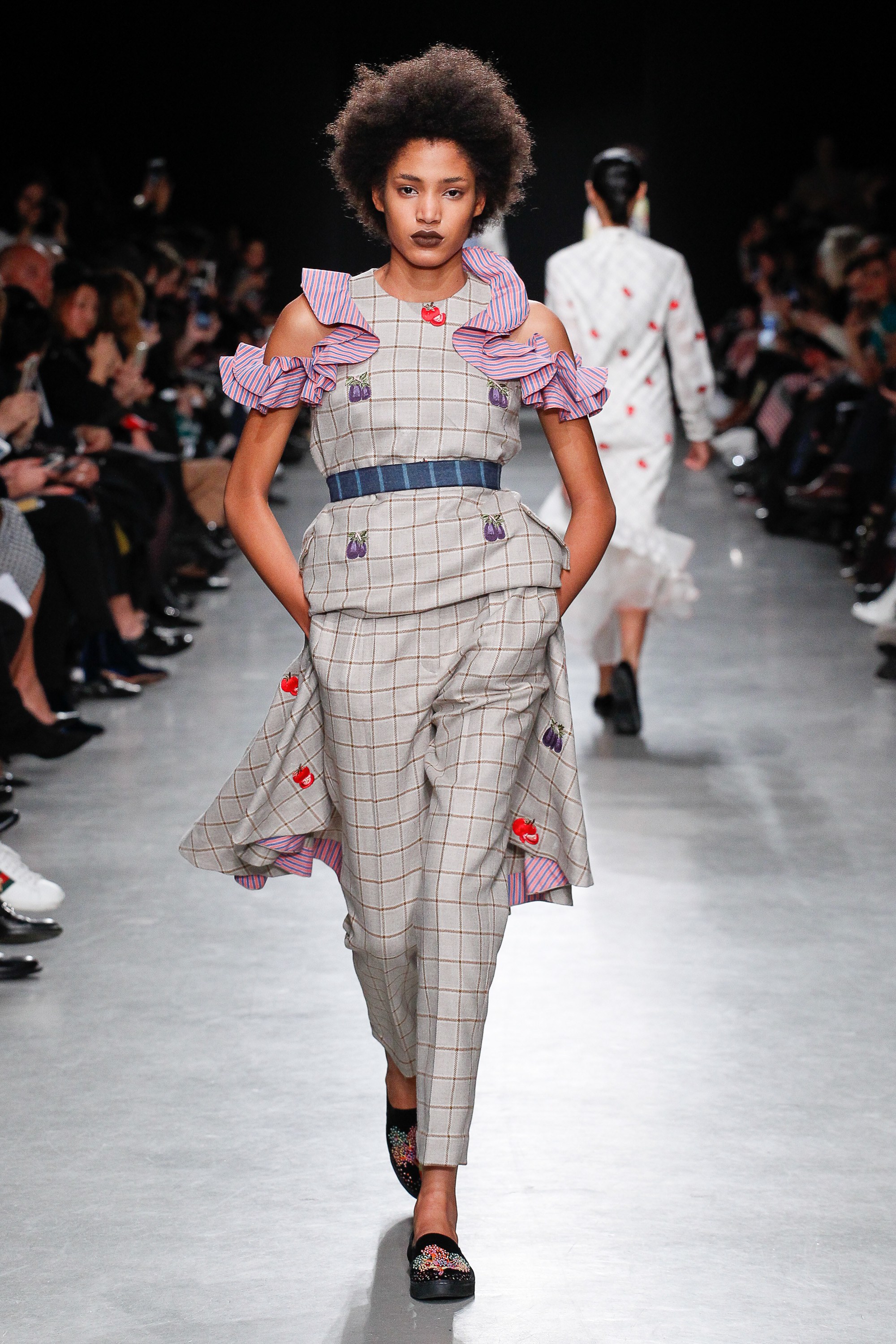 Fruit print designs spoke to an everlasting fashion trend and definitely felt more right for a season speaking to warmer temperatures than that of Fall. Nevertheless, a check print top and cropped trousers with ruffle detailing were beyond adorable, while a bomber in the same yummy pattern could easily be worn over a form-fitting dress or boyfriend jeans, with ease.