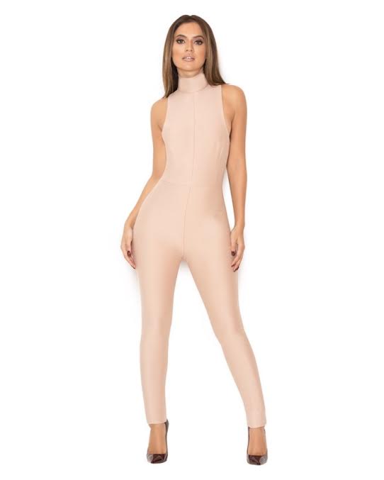 The Charnell jumpsuit features a high neck sleeveless cut and is made from a soft, stretchy scuba jersey material that is flattering to the figure.