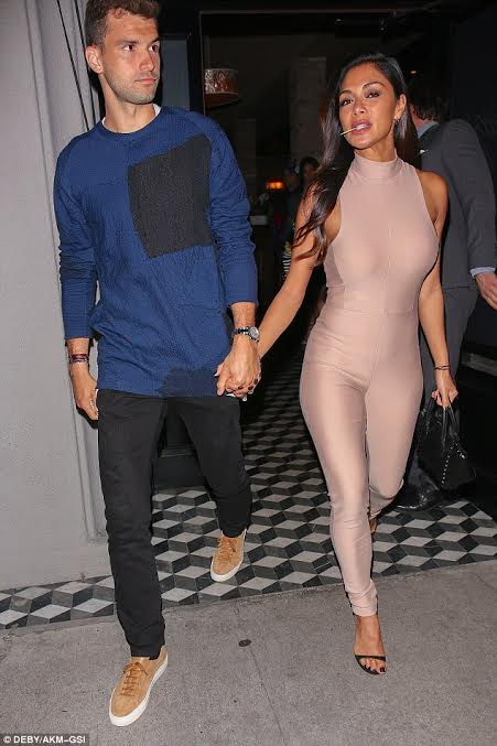 Nicole Scherzinger dined in LA with her boyfriend wearing a $149 House of CB ‘Charnell’ Nude Scuba Jumpsuit: