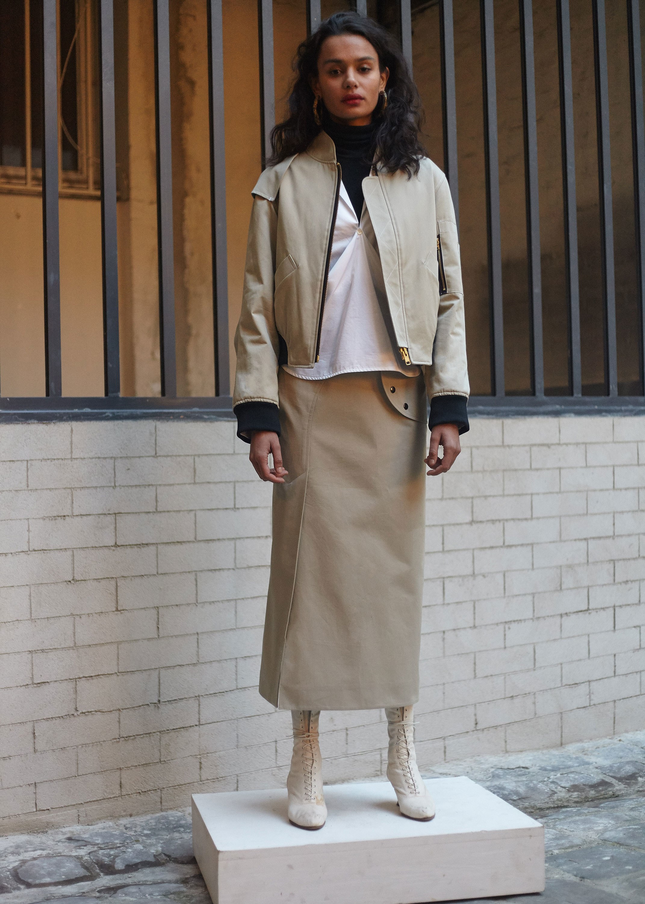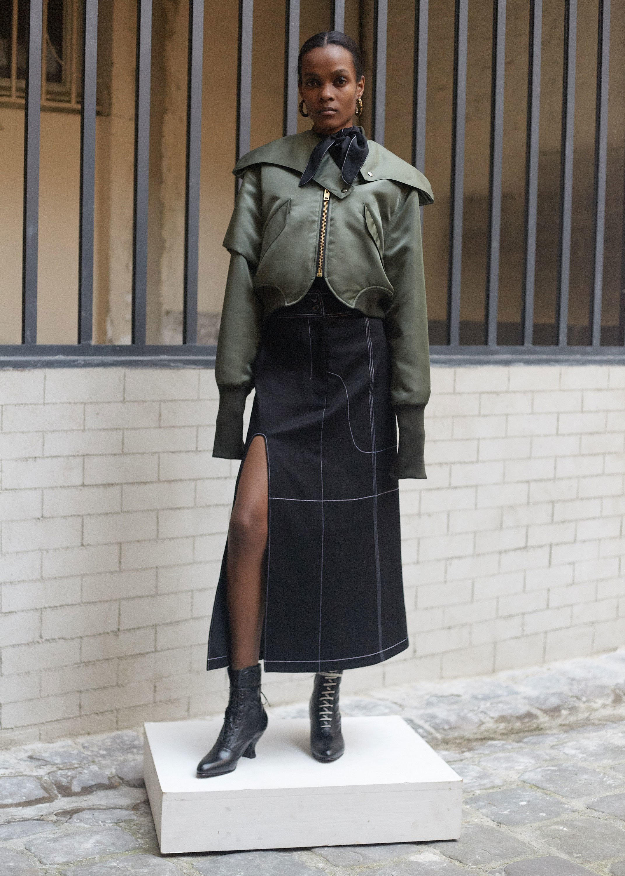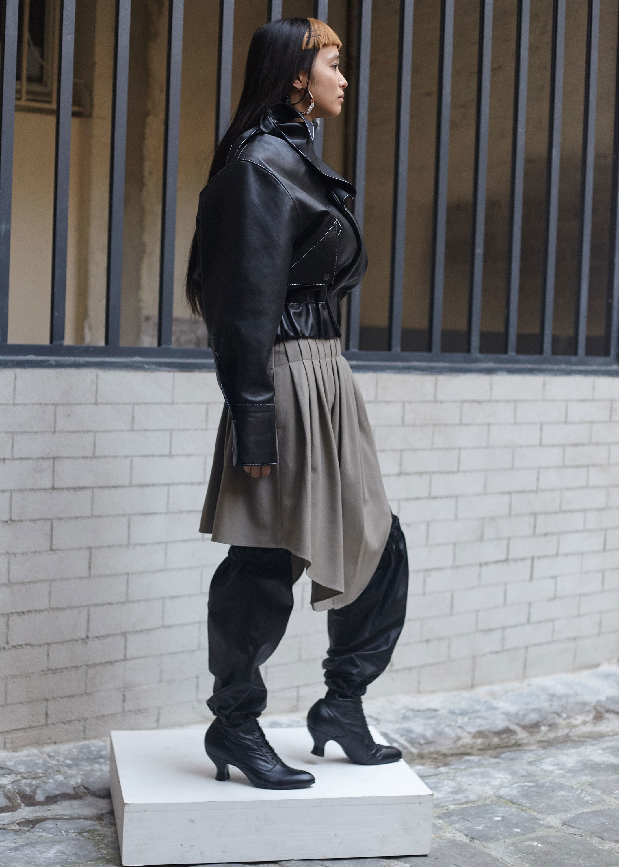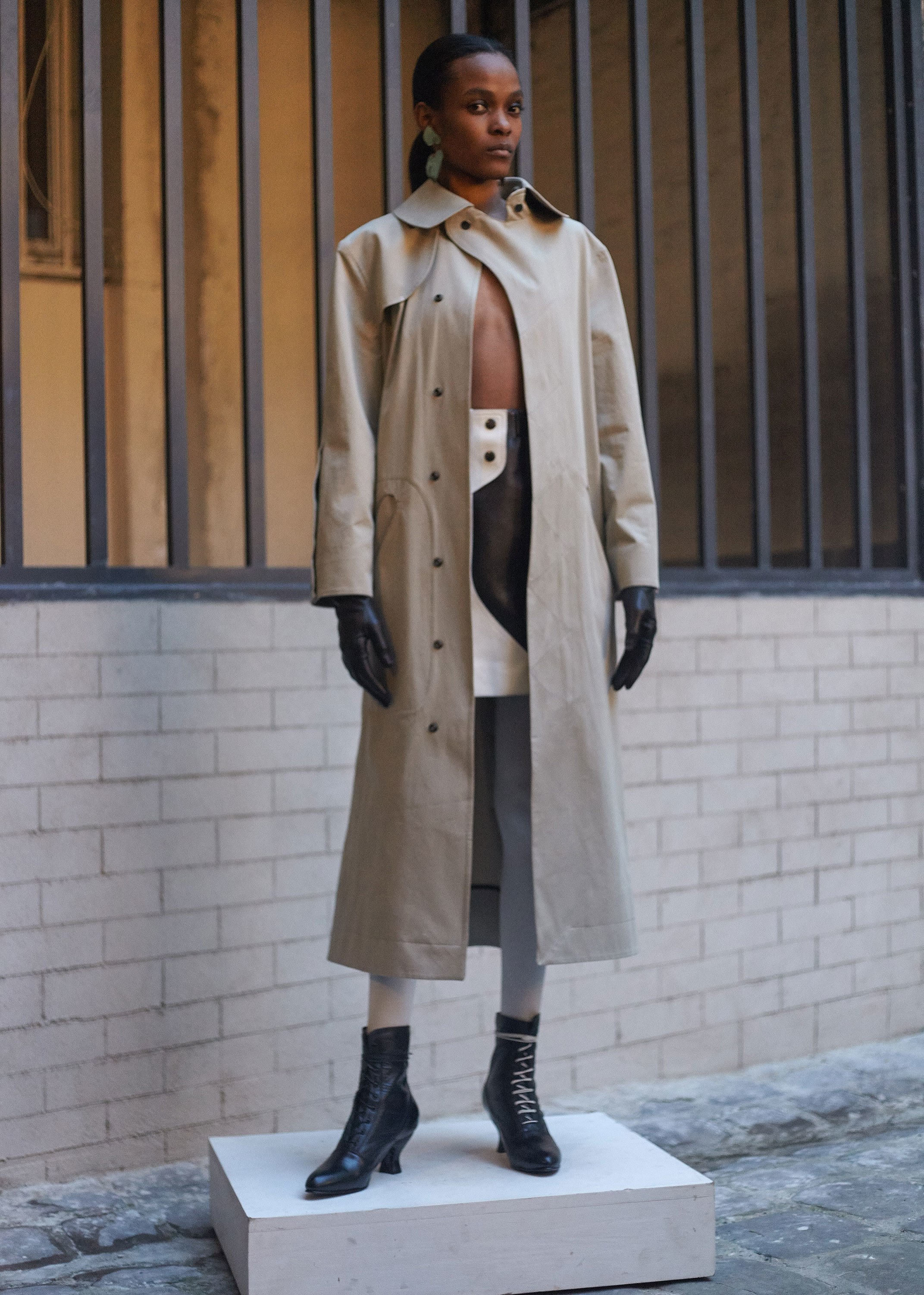 The assortment was small and edited, but outerwear made a big statement. The designs brought Kruszewkski’s self-taught education to life, with a real sense of nonconformity to the traditional fashion rules.