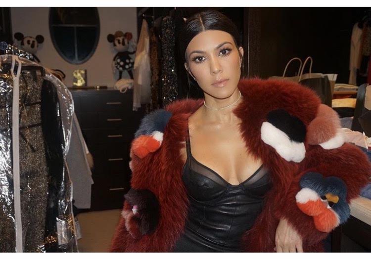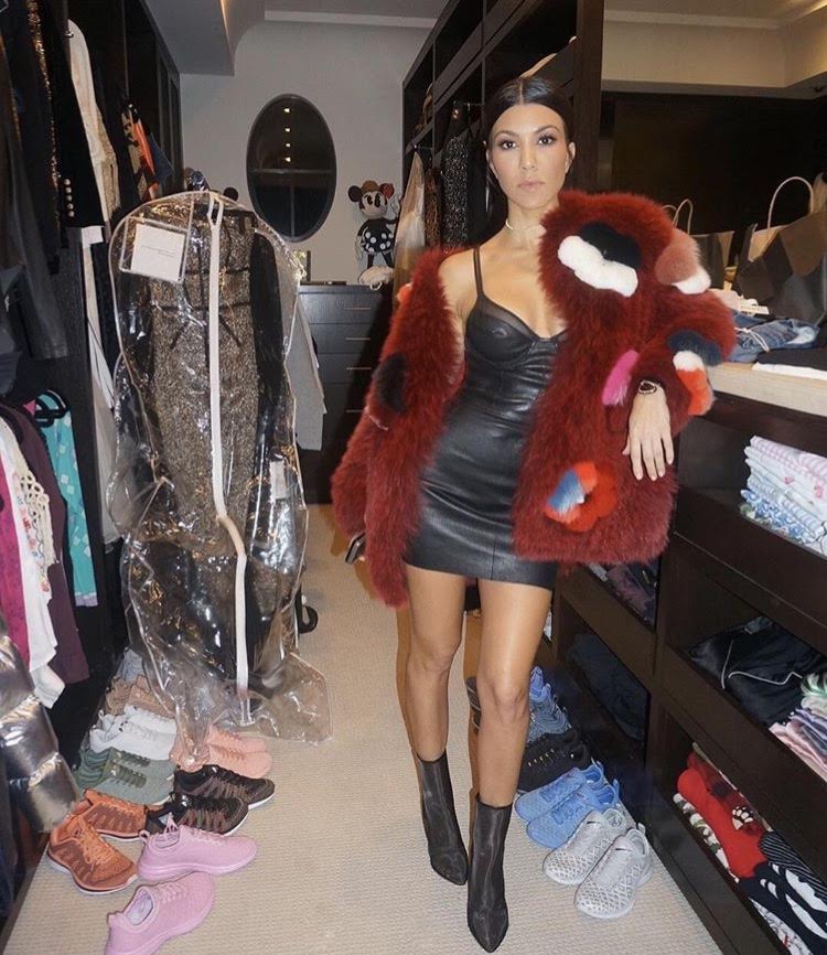 Kourtney Kardashian posed for the ‘gram in Fendi’s Pre-Fall 2016 Burgundy Monster Fur Coat and $1,576 Jitrois Stretch Leather Dress: