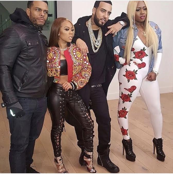 Singer Keyshia Cole posed on the set of her new video in a Moschino embellished jacket and black leather lace-up pants.