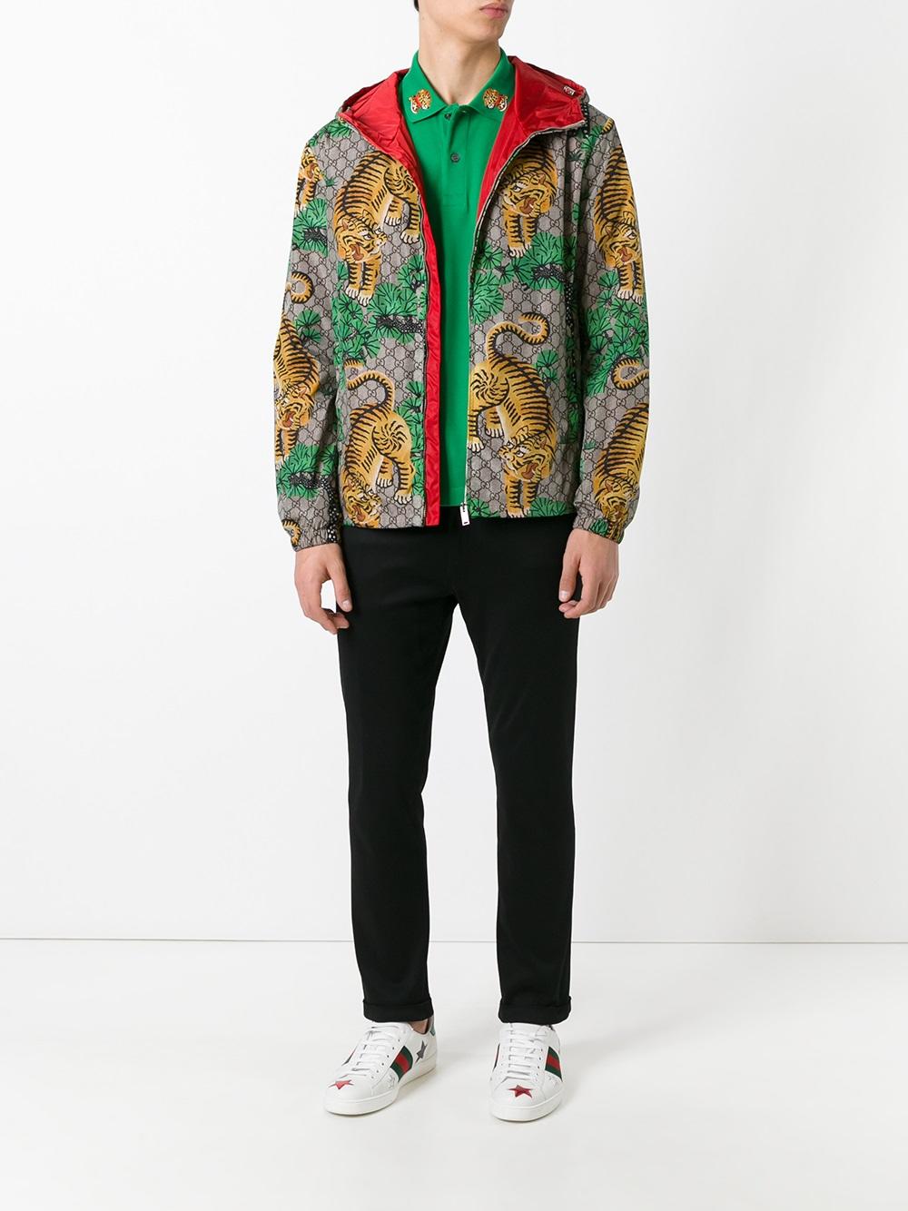 If you want to splurge on the Gucci Bengal Tiger Jacket, you can purchase it here for $1,490. You can purchase the Bengal Print Shorts here for $790.