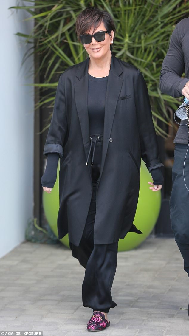 Mom-ager extraordinaire, Kris Jenner was spied leaving a studio in Los Angeles, dressed in all black and $750 Gucci Princetown Toil Horsebit Mules: