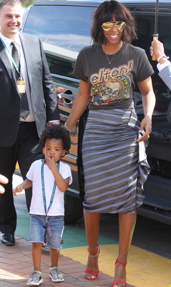 Kelly Rowland is the queen of the quiet slay! The mother appeared in Australia with son Tristan wearing a Ron Herman tee, Veronica Beard Drew Stripe Cascade pencil skirt, and Ade Samuel shoes. Simple, but stunning!