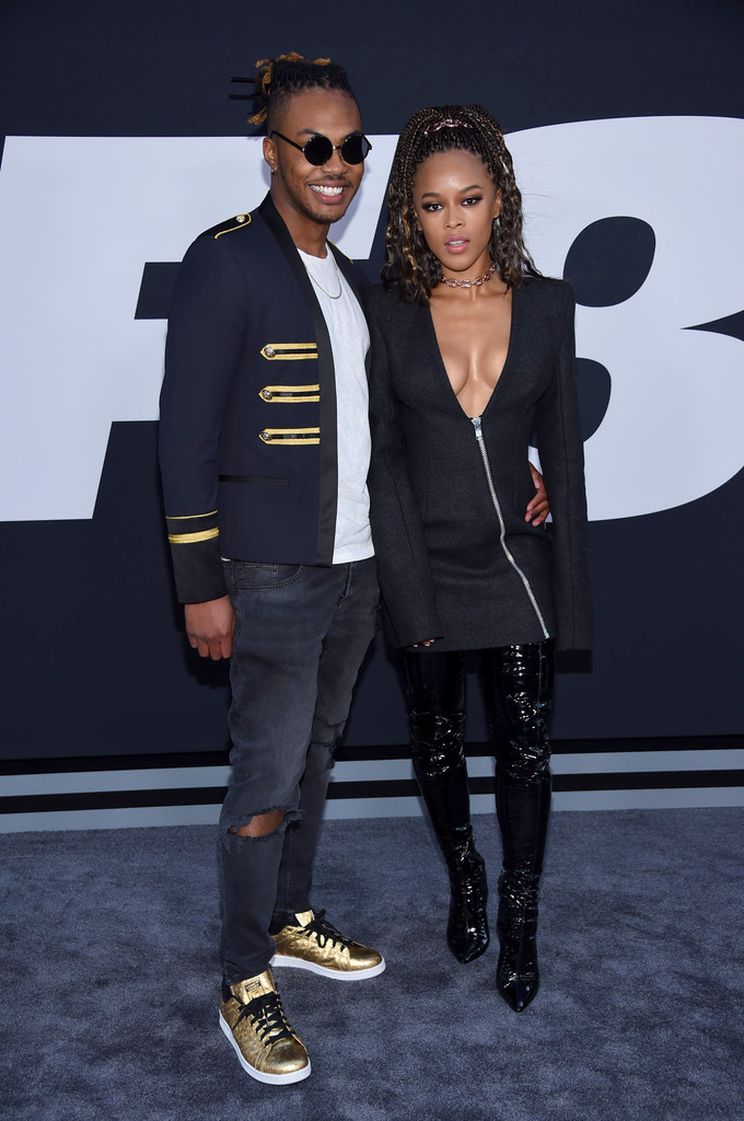 Serayah was clad in a long-sleeve, zipper accented LaQuan Smith LBD and a $367 Seville Michelle Maritime Rose Necklace—alongside musician Ohana Bam. Hot!