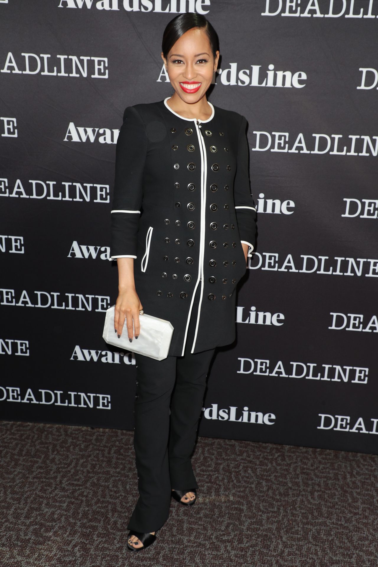 Queen Sugar’s Dawn Lyen-Gardner also chose a suit—hers was grommet-detailed in black and white.