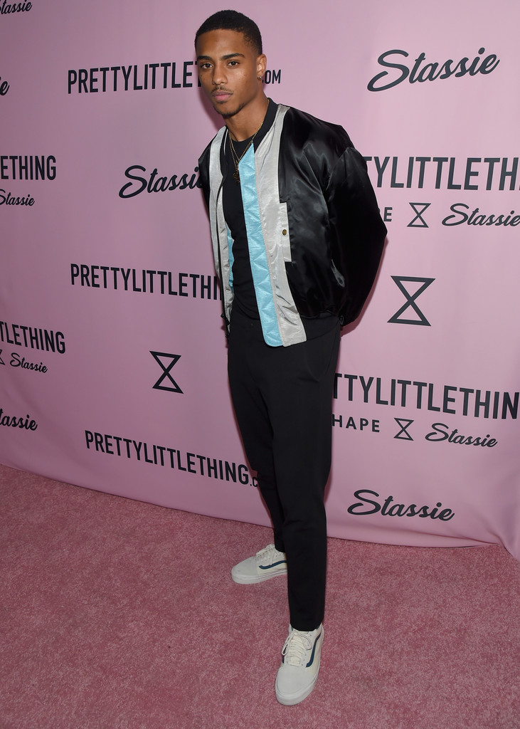 Keith Powers repped for the fellas in a colorblock bomber jacket and low-top kicks. Hot!