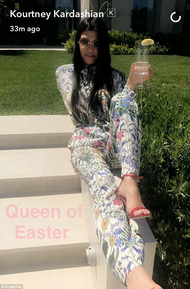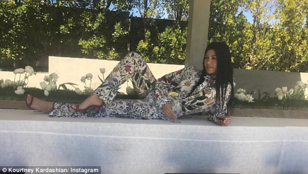 Kourtney Kardashian enjoyed the Easter holiday with friends and family dressed in a $1,300 Gucci New Flora Print Oversized Shirt and $1,200 New Floral Print Pajama Pants: