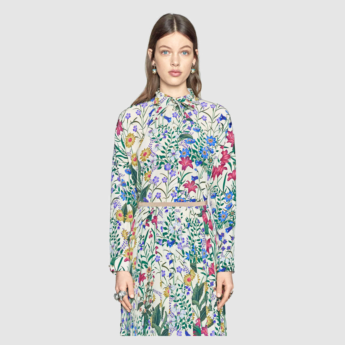 The Flora print has continued to evolve and here is Alessandro Michele’s interpretation of the original print from the 60s. This oversize neck bow shirt has become a key silhouette for Gucci.