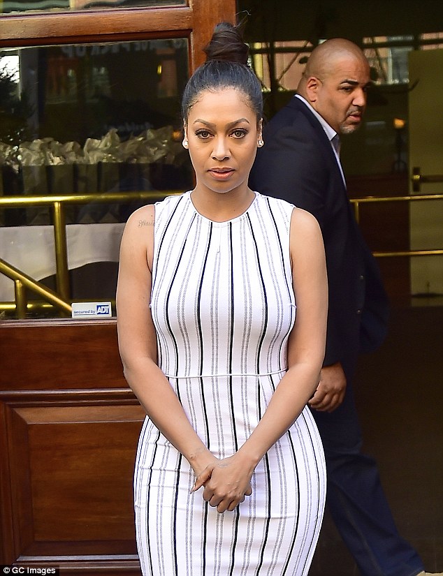 Lala Anthony was spotted in NYC clad in a $475 Opening Ceremony Lotus Striped Midi Dress:
